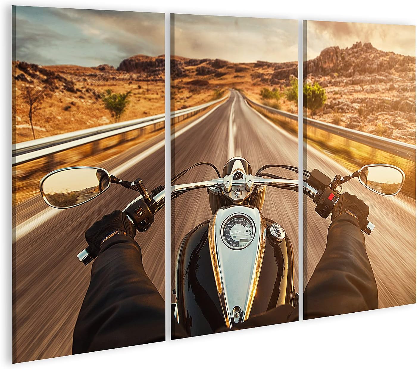 islandburner Bild auf Leinwand Motorrad Fahrer auf einsamen US Highway im Sonnenuntergang Bilder Wan