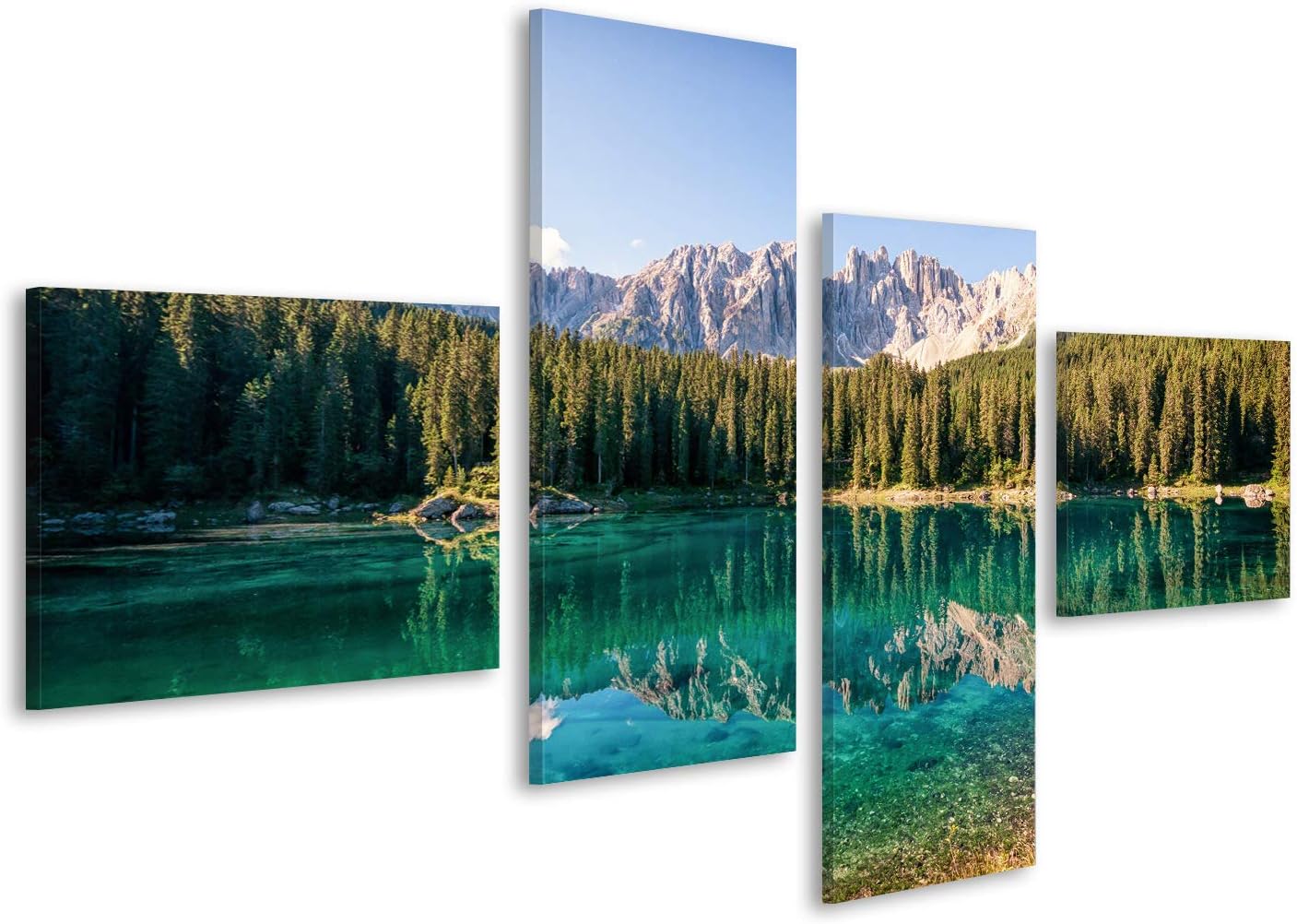Bild auf Leinwand Karersee bei den Dolomiten in Italien Wandbild Poster Leinwandbild 150x80 4-teilig