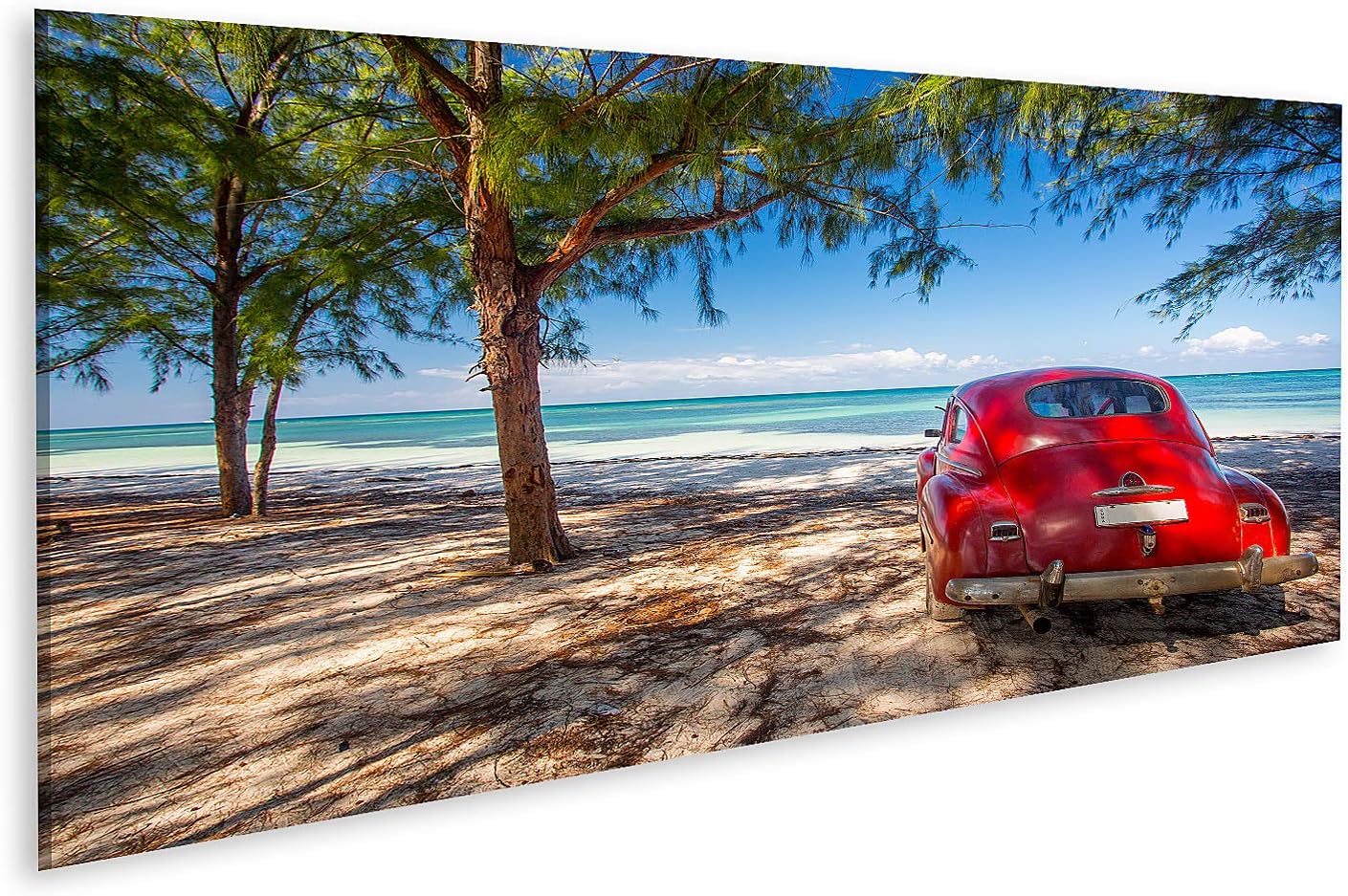 islandburner Bild auf Leinwand Oldtimer Rot Strand Kuba Bilder Wandbilder Poster Leinwand 120x40cm -
