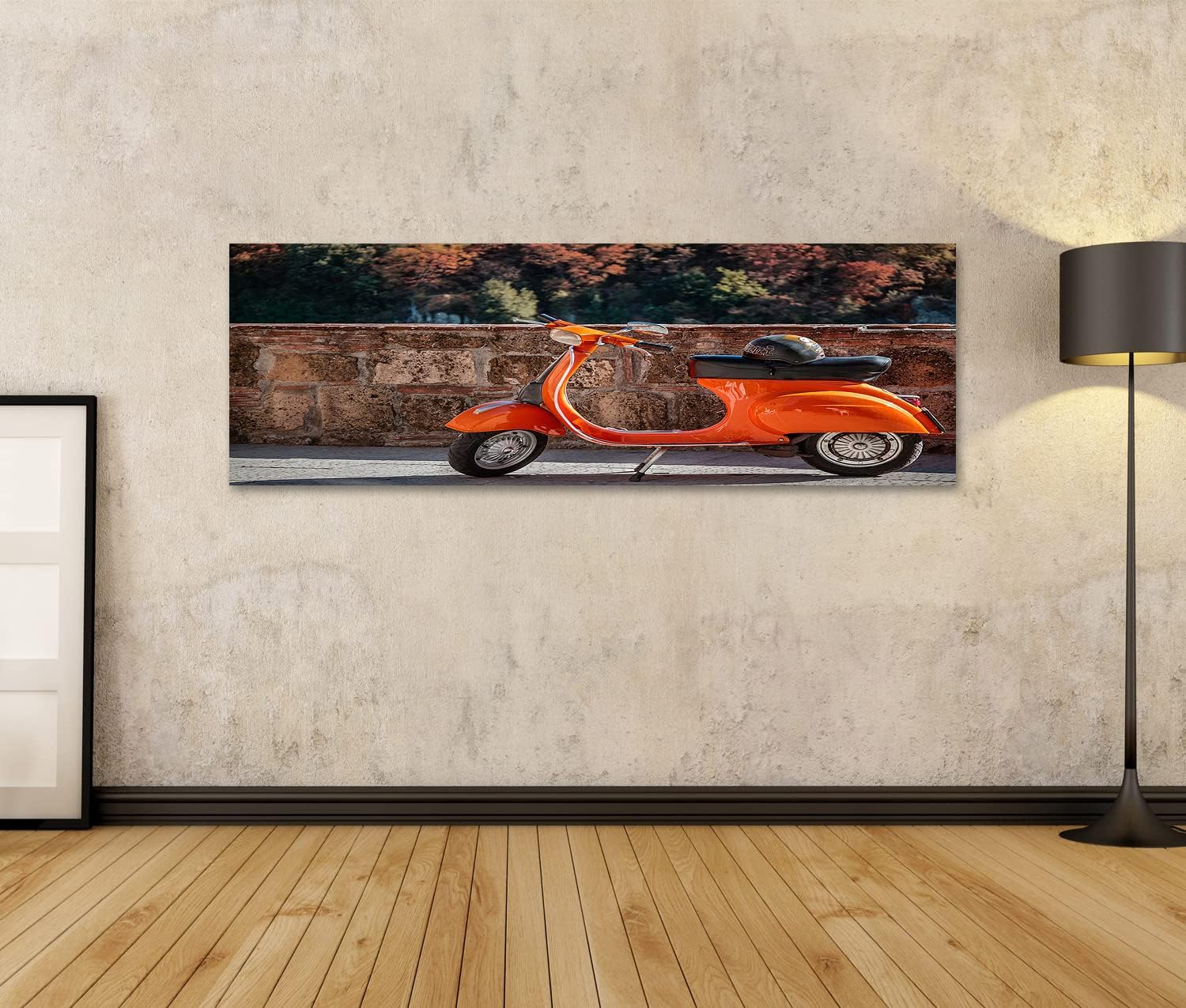 islandburner Bild auf Leinwand Orange Vespa Classic Bilder Wandbilder Poster Leinwand 120x40cm - Pan