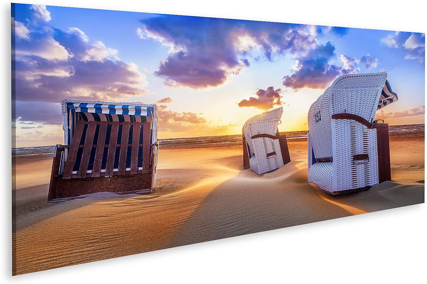 islandburner Bild auf Leinwand Strand Sonnenuntergang Ostsee Strandkörbe Bilder Wandbilder Poster Le