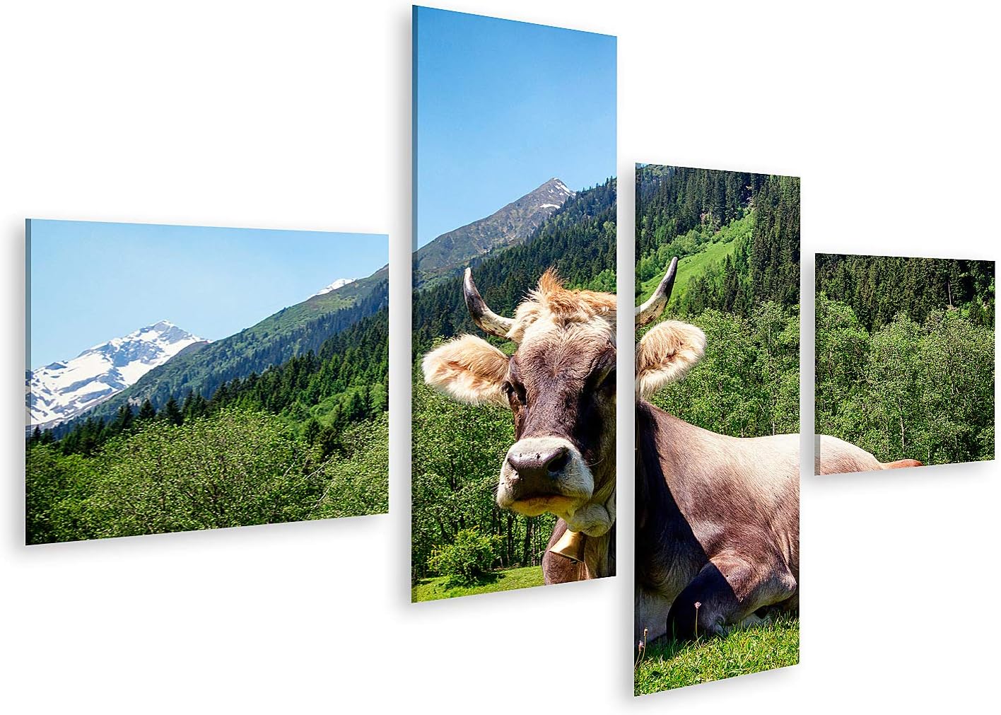 islandburner Bild auf Leinwand Kuh Europäische Alpen Bilder Wandbilder Poster Leinwand 150x80cm - 4