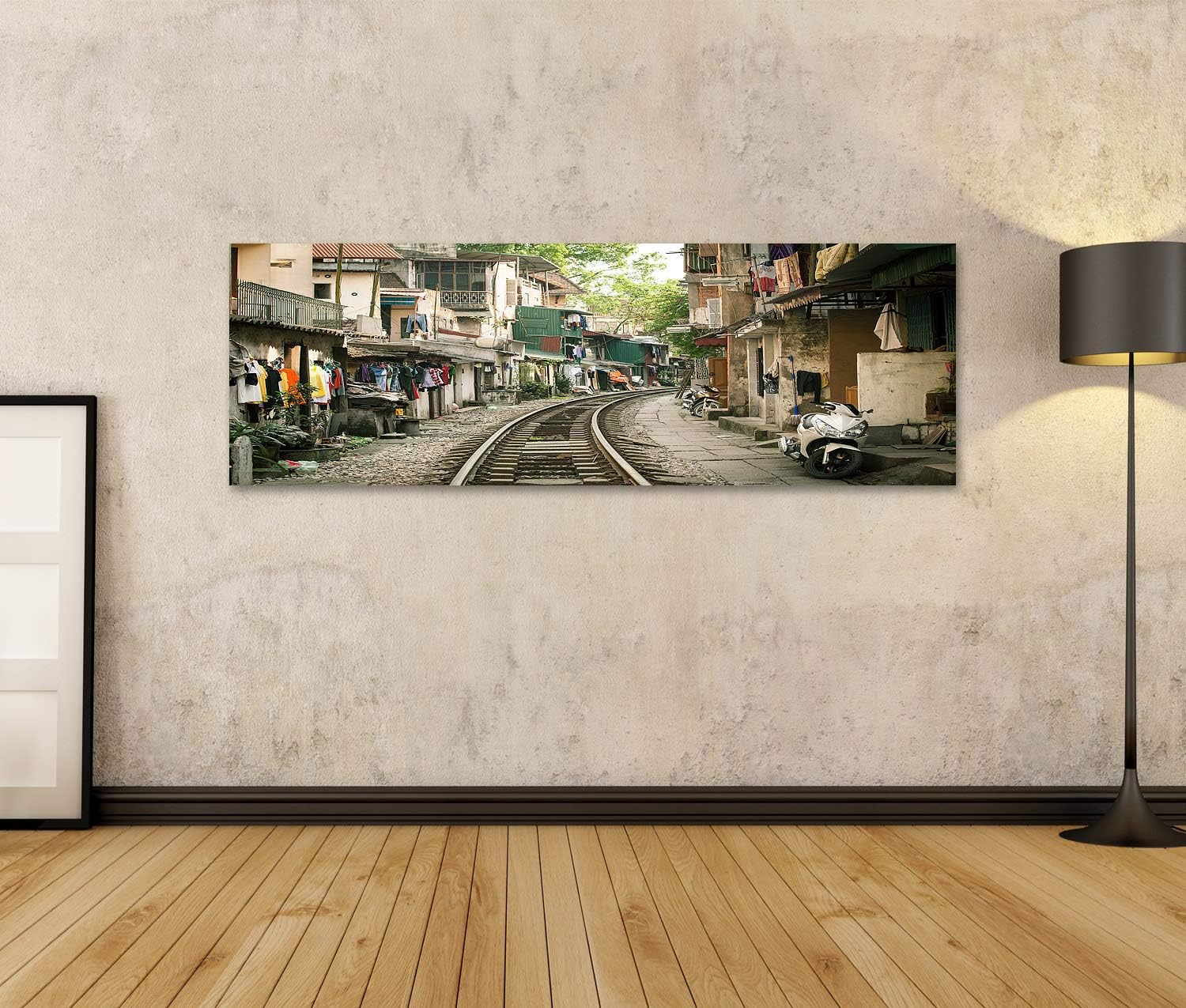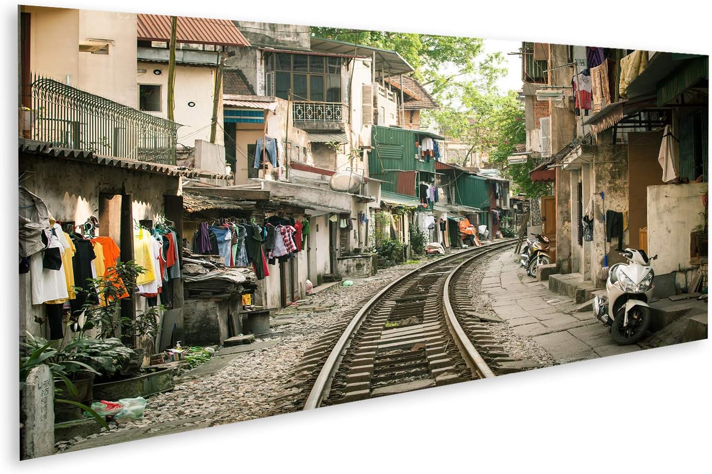 Bild Bilder auf Leinwand Lokale Häuser in der Nähe der aktiven Eisenbahn in der Altstadt von Hanoi,