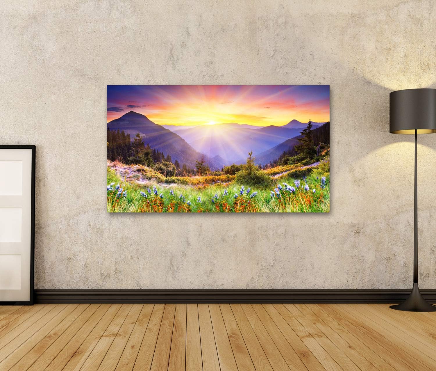 Bild Bilder auf Leinwand majestätischer Sonnenuntergang im Gebirgslandschaft HDR Bild Wandbild, Post