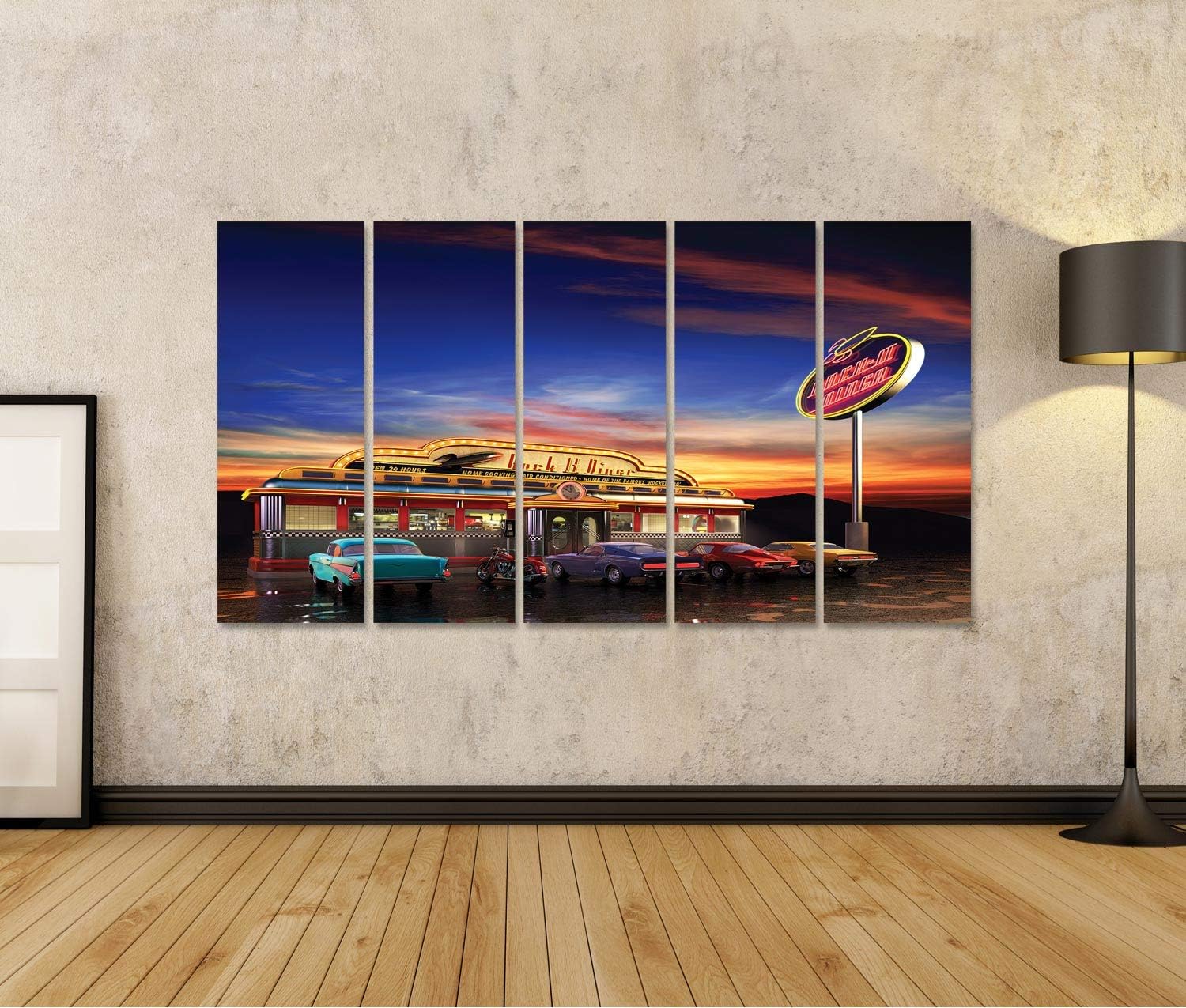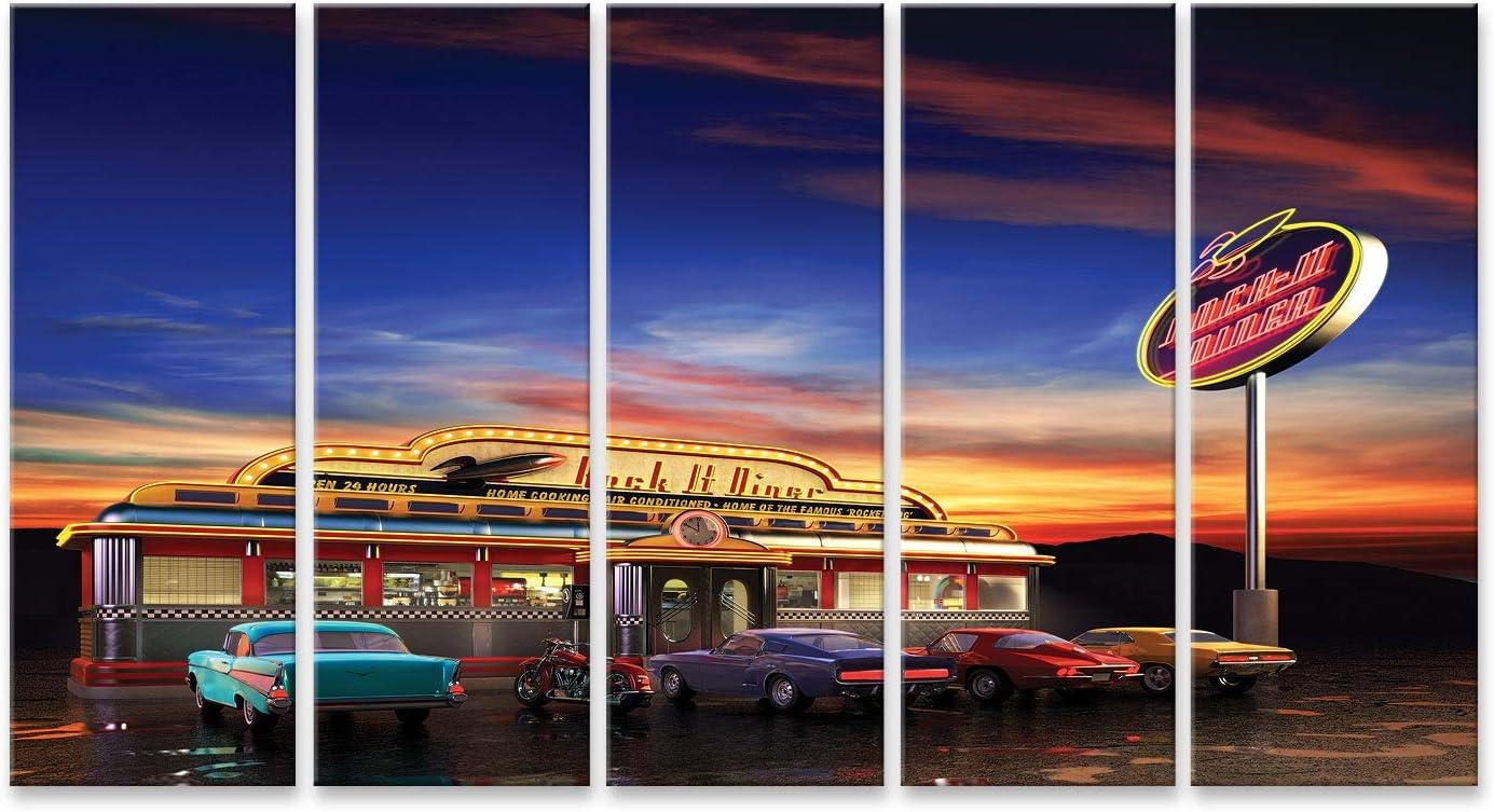 Bild Bilder auf Leinwand Retro American Diner in der Abenddämmerung Wandbild Poster Leinwandbild QYW