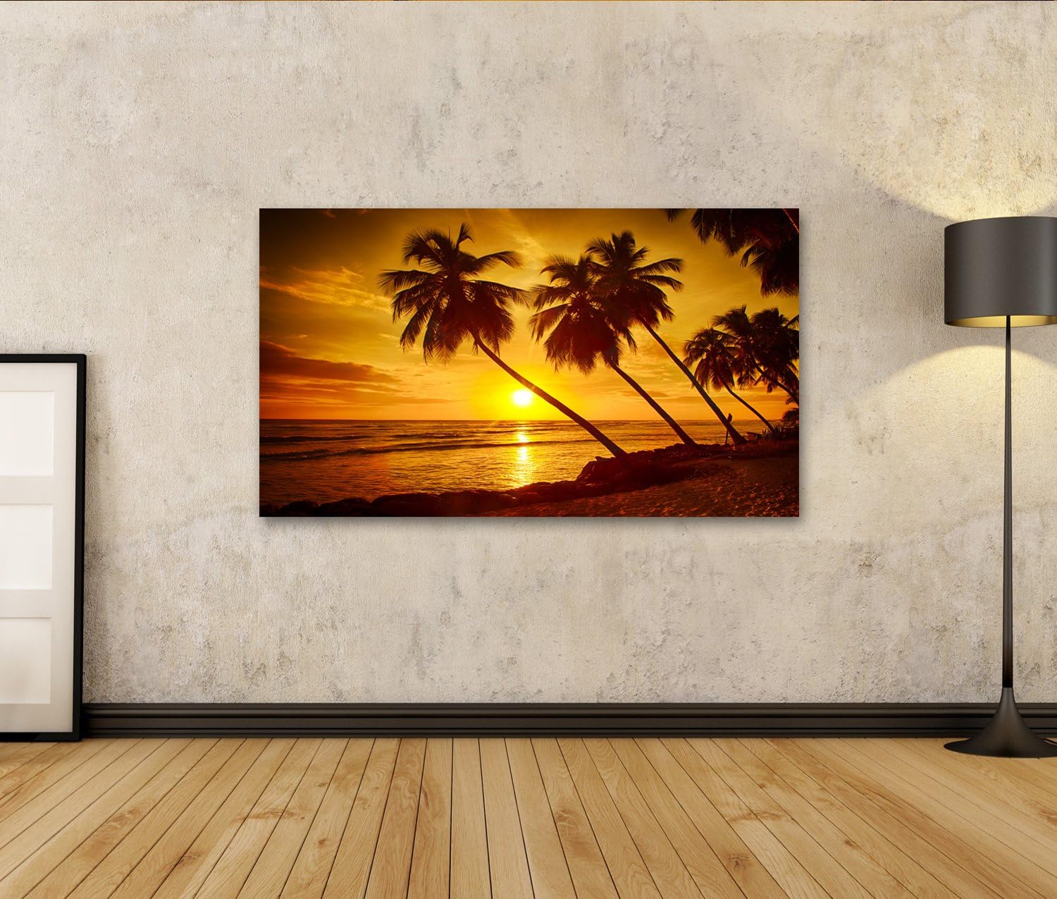 Bild Bilder auf Leinwand Schöner Sonnenuntergang über dem Meer mit Blick auf Palmen am weissen Stran