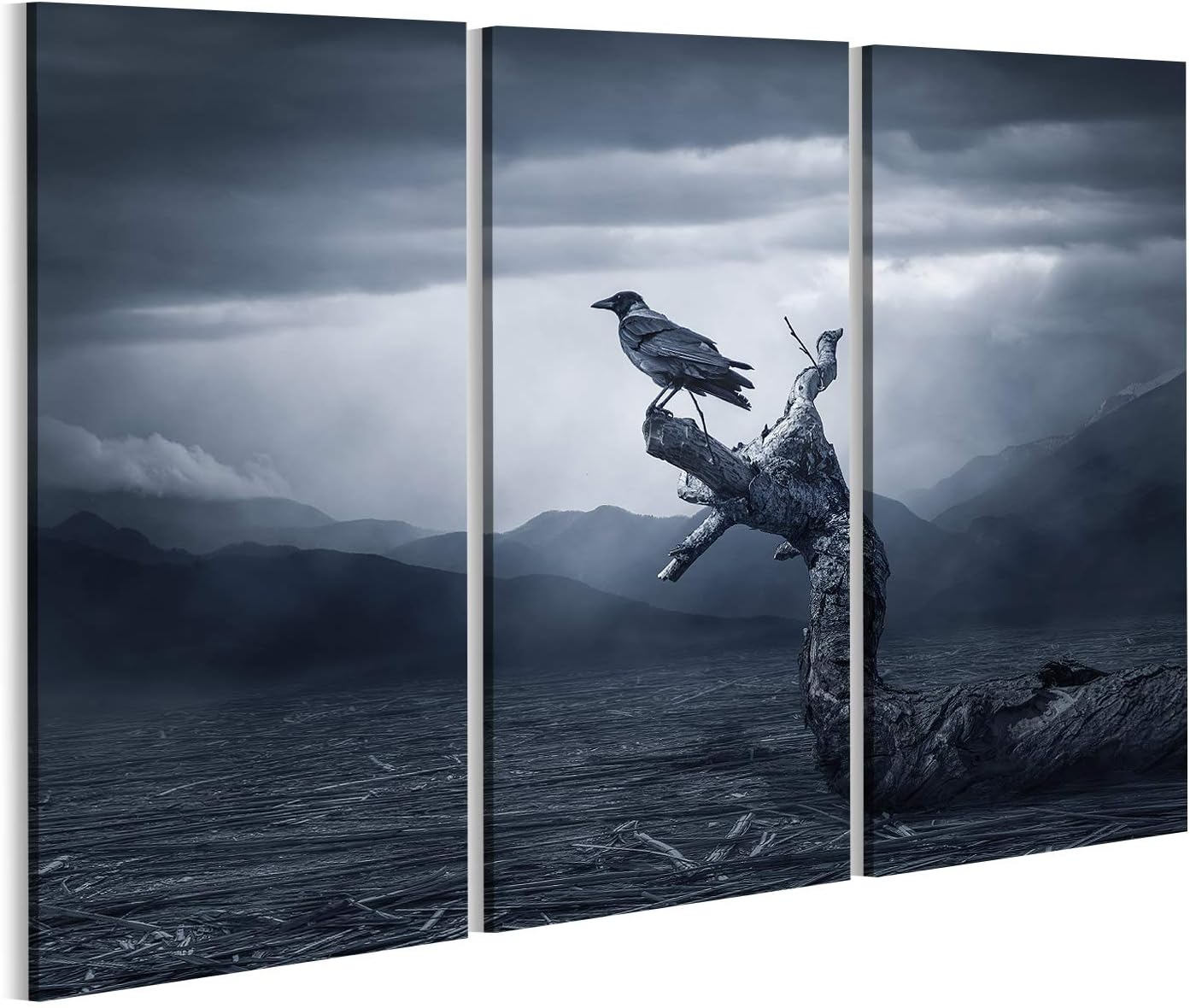 Bild Bilder auf Leinwand Schwarzer Rabe im Mondschein hockte auf Baum. Gruselig, gruselig, gotische