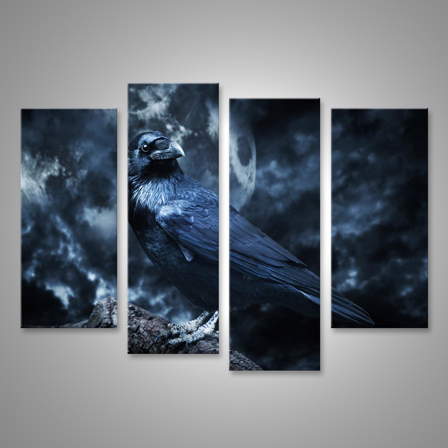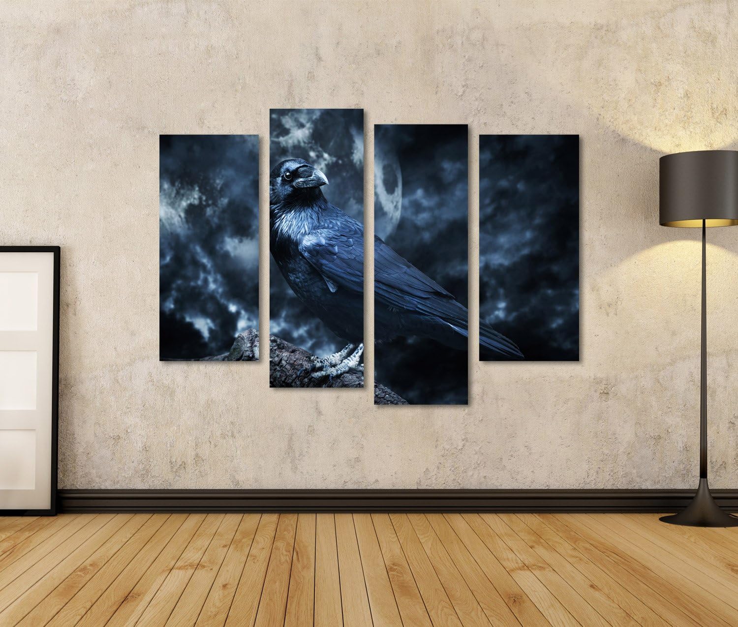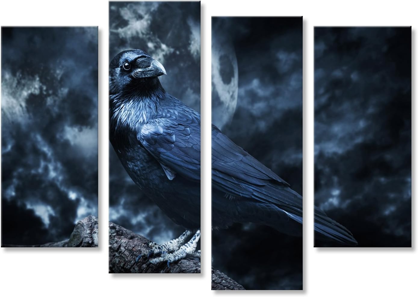 Bild Bilder auf Leinwand Schwarzer Rabe im Mondschein hockte auf Baum. Gruselig Wandbild, Poster, Le