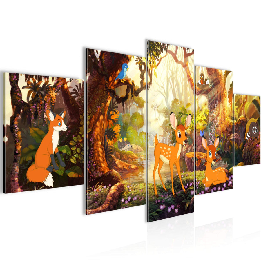 Runa Art Wandbilder Kinderzimmer Wald 5 Teilig Bild auf Vlies Leinwand Deko Babyzimmer Spielzimmer W