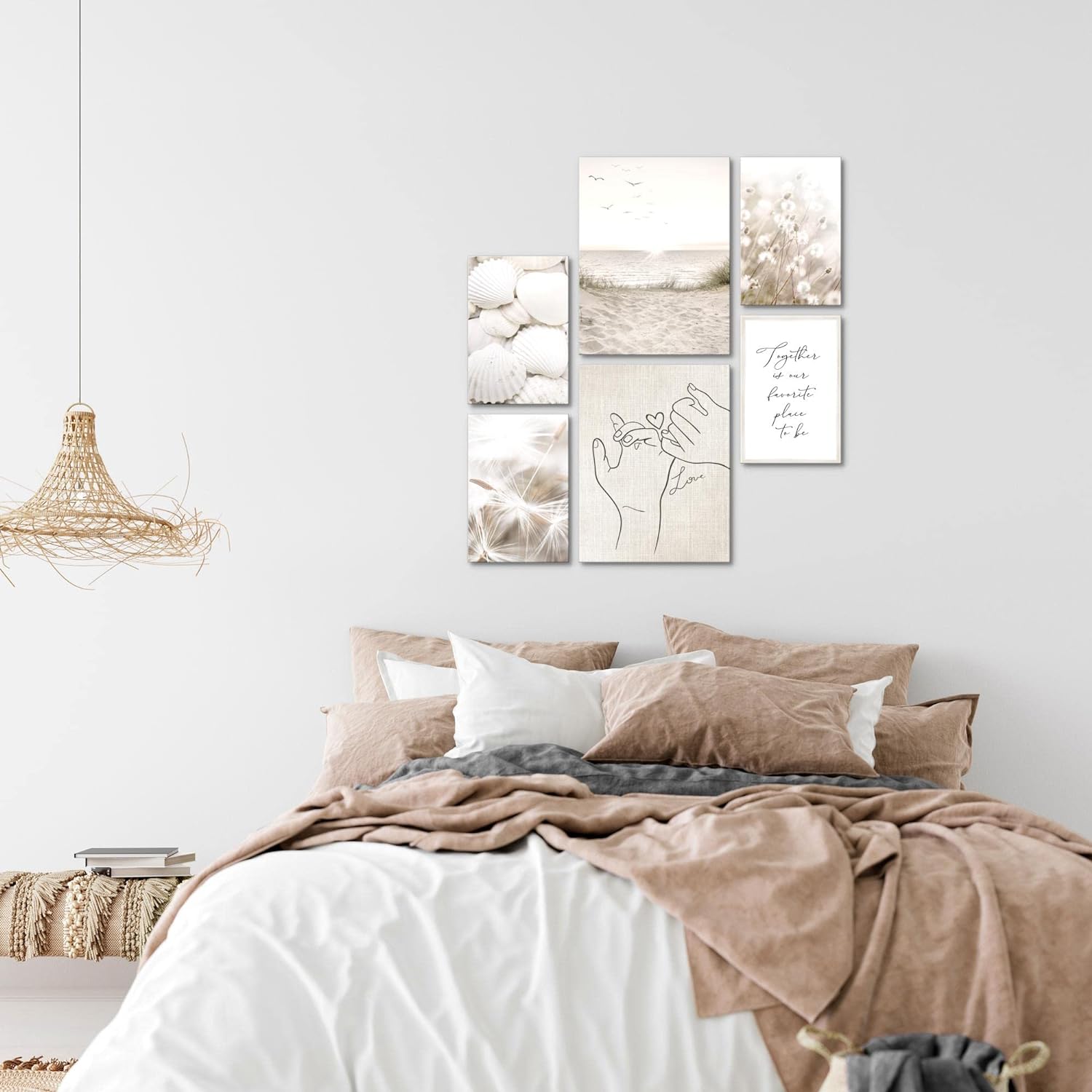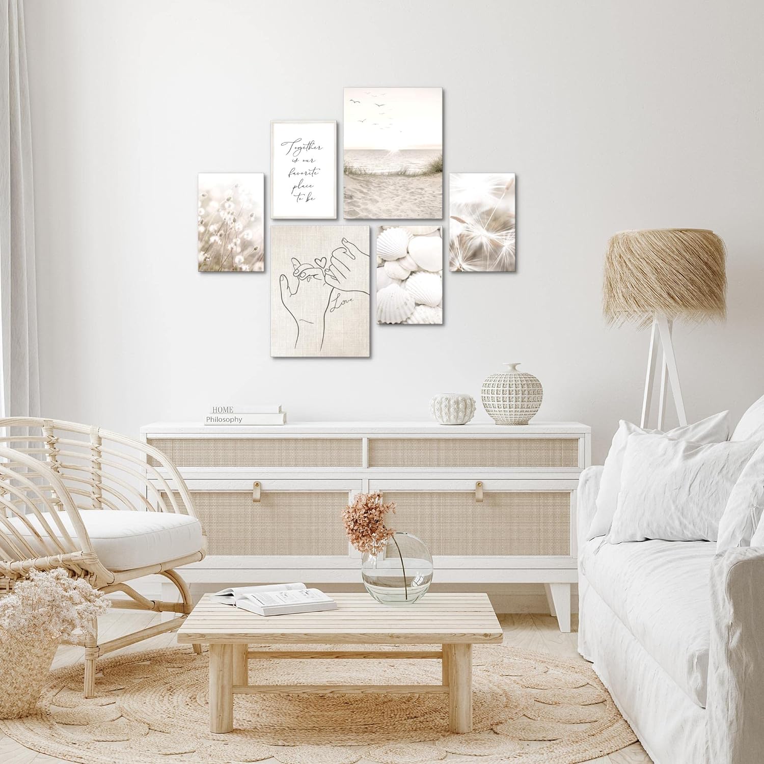 Novart Bilder Set - AUFHÄNGFERTIG - KEIN EXTRA RAHMEN BENÖTIGT - Boho Strand Modern Beige - Wohnzimm