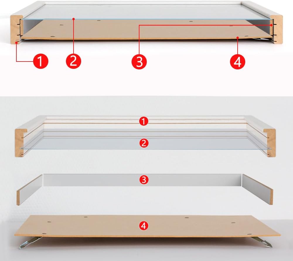 - Ohne Abstandsleisten auch als herkömmlicher Bilderrahmen zu verwenden (eine genaue Erklärung/Beschreibung finden Sie in den Artikelbildern)