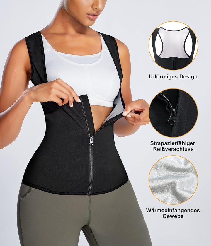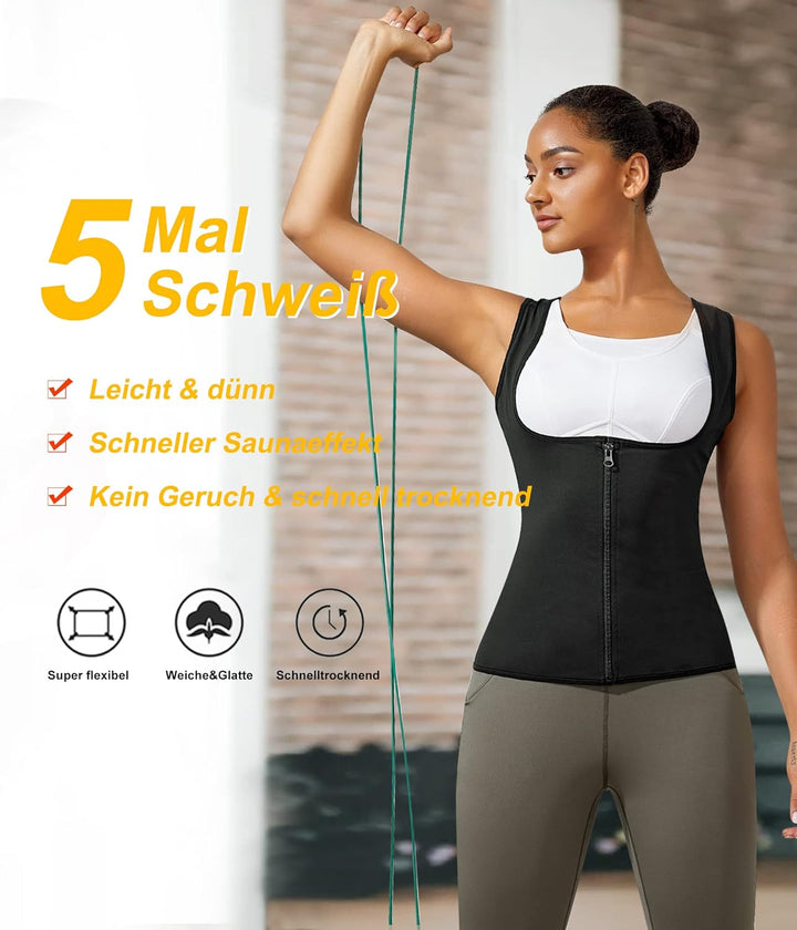 - AUSGEZEICHNETE QUALITÄT: Dieser Sportjacke Schwitzanzug Laufjacke Damen besteht aus hochwertigem wärmespeichernden Polymergewebe, extrem dünn und weich auf der Haut, eng anliegend, fühlt sich aber nicht einschränkend an. Taillentoner fängt die Wärme ein, damit Sie einen heissen Saunaeffekt geniessen können. Durch tägliches Training mit dem Sport Anzug für Damen und in Kombination mit einer gesunden Ernährung wirkt dieser Sauna Weste ohne Ärmel Damen Wunder, um Körper in die Passform zu bringen.