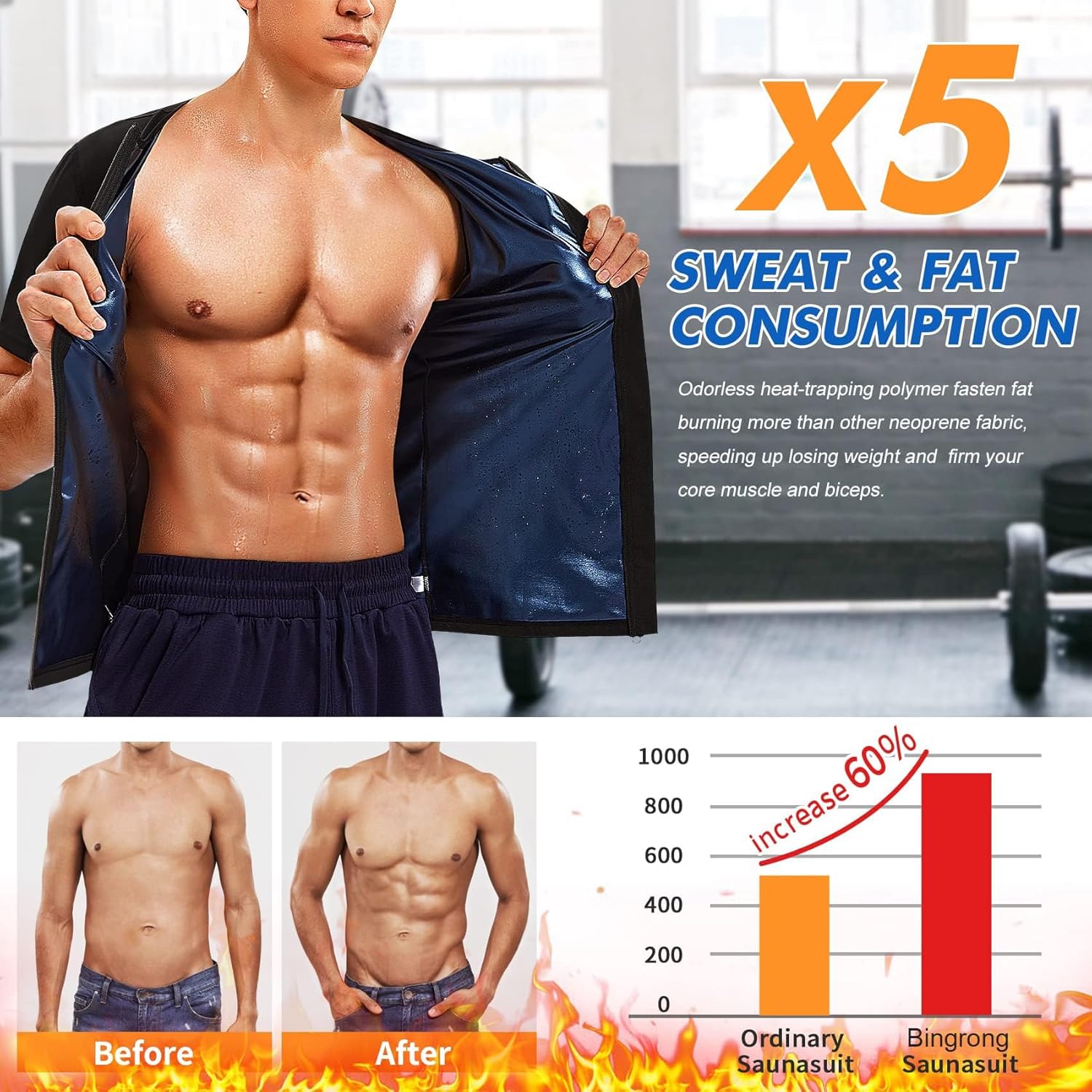 - 🔥SCHWITZEN CRAZIL: Bingrong aktualisiert sauna shirt herren abnehmen aus neuen Composite-elastischen gestrickten Stoff, sauna body shaper herren bauchweg beschleunigen Fettverbrennung im Zielbereich während des Trainings, so dass unsere sauna weste herren hilft, verrückt während des Tragens zu schwitzen, um eine gesunde Fettverbrennung und Schlankheitseffekt zu erreichen.