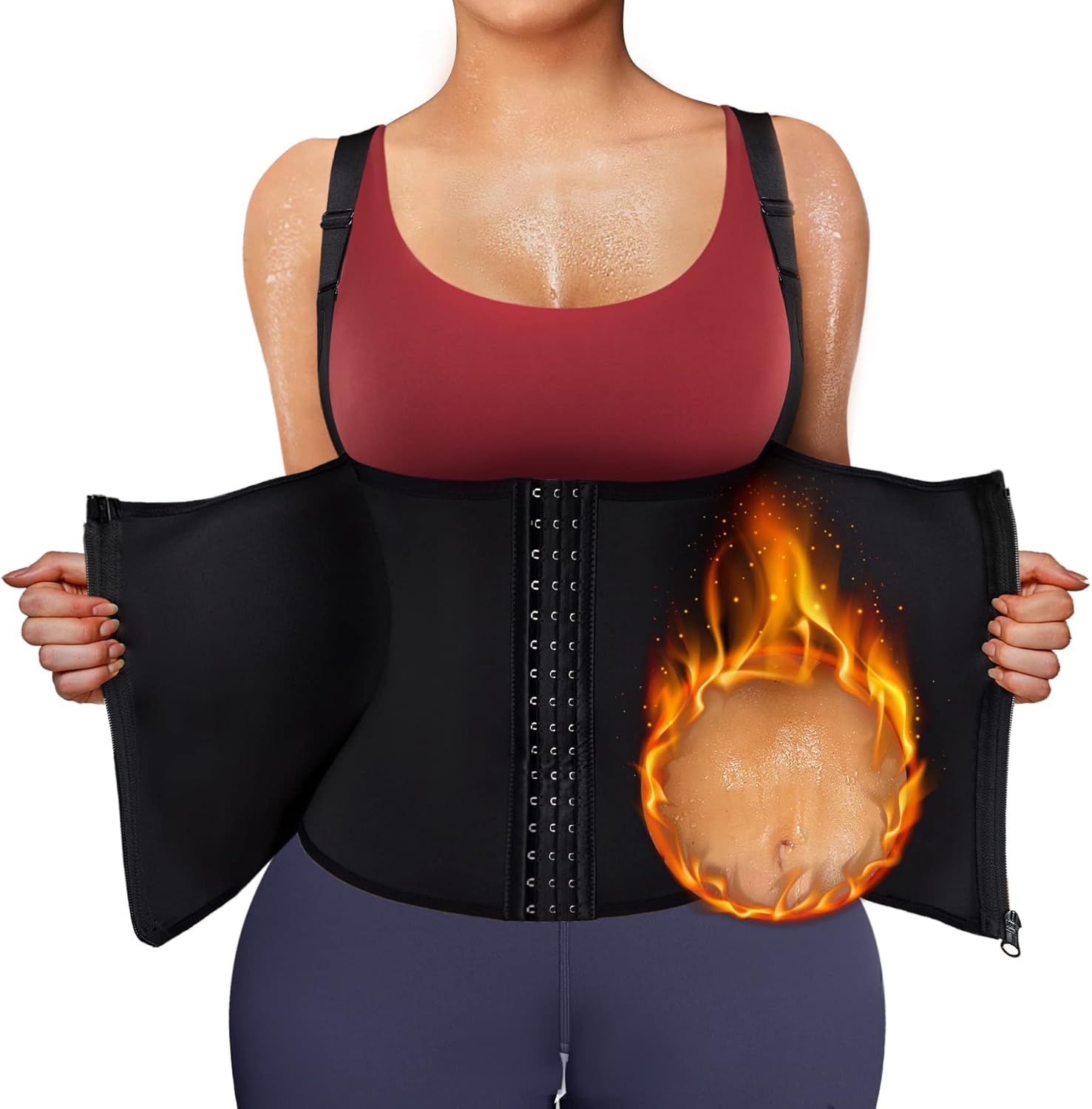 - 【DOPPELTE HOHE KOMPRESSIONSKONTROLLE】 Dieser unterbrust korsett damen bauchweg ist mit einer doppelten Verstärkung an Taille und Bauch ausgestattet, hilft, den Schweiss zu erhöhen, Fett zu verbrennen, um die Taille zu reduzieren, den Bauch zu glätten, bietet mehr Unterstützung durch das Tragen von korsett taillenformer. Verstellbar Shapewear damen bauchweg hat 3 Hakenreihen und Ösenverschlüsse unter dem Reissverschluss, um verschiedene Kompressionsstufen einzustellen.