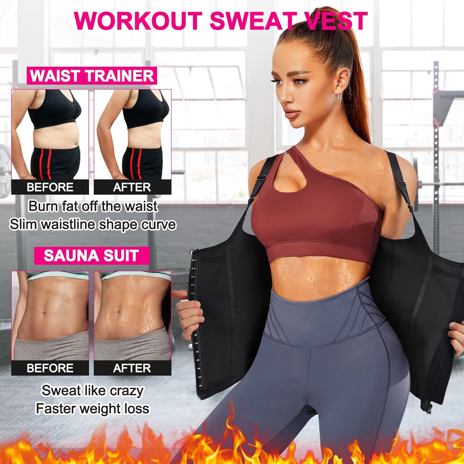- 【DOPPELTE HOHE KOMPRESSIONSKONTROLLE】 Dieser unterbrust korsett damen bauchweg ist mit einer doppelten Verstärkung an Taille und Bauch ausgestattet, hilft, den Schweiss zu erhöhen, Fett zu verbrennen, um die Taille zu reduzieren, den Bauch zu glätten, bietet mehr Unterstützung durch das Tragen von korsett taillenformer. Verstellbar Shapewear damen bauchweg hat 3 Hakenreihen und Ösenverschlüsse unter dem Reissverschluss, um verschiedene Kompressionsstufen einzustellen.