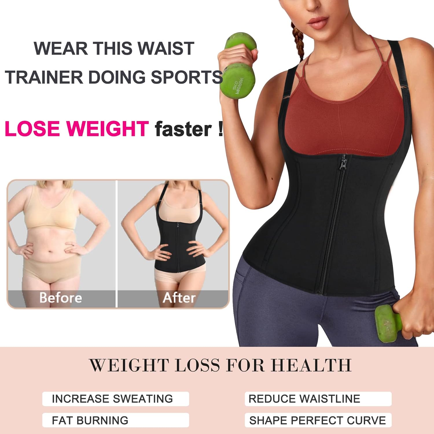 - 【IDEAL KORSETT TOP FÜR ALLE GELEGENHEITEN】 Die body shaper damen schwitzgürtel grossartig für Fitnessstudio, Yoga, Laufen und alle Arten von Workout-Aktivitäten für verrückte Schweiss. 2 in 1 shapewear damen bauchweg stark formend body shaper, nicht nur Form Ihre Taille, sondern auch Schweiss Taille Trimmer. Für eine bessere Wirkung, messen Sie bitte Ihre Taille (3 cm über dem Nabel), dann beziehen Sie sich auf das linke Grössentabelle Bild.