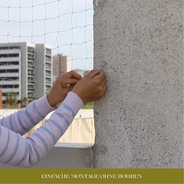 - ✅ Sehr einfach überall zu installieren. Setzen Sie am ersten Tag alle 25 cm einen Haken und lassen Sie ihn trocknen. Bringen Sie das Netz am zweiten Tag an. Sie können das überschüssige Material ganz einfach mit einer Schere abschneiden.