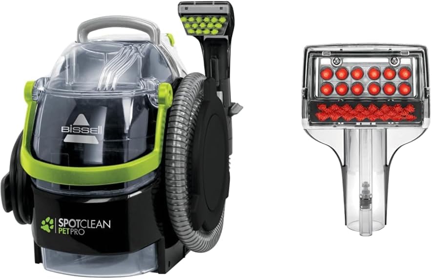 BISSELL 15585 SpotClean Pet Pro Portable, Schwarz/Grün, 750 W, 84 Dezibel + Tiefenreinigungs-Aufsatz