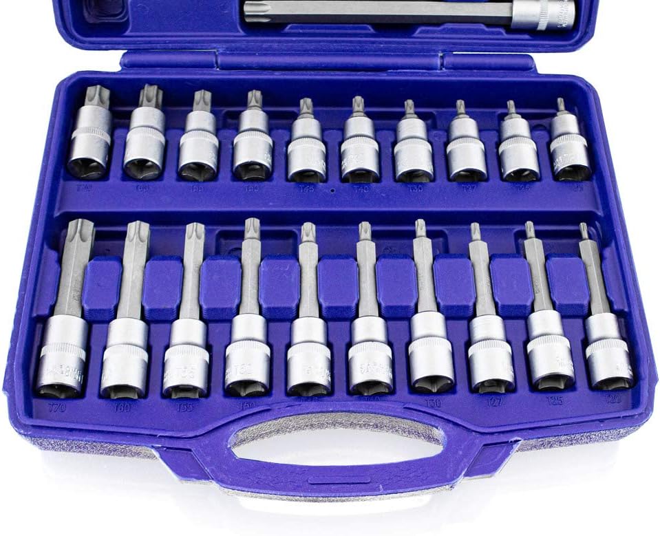 - 32 teiliges Stecknuss Set aus robustem und widerstandsfähigem Chrom-Vanadium-Stahl