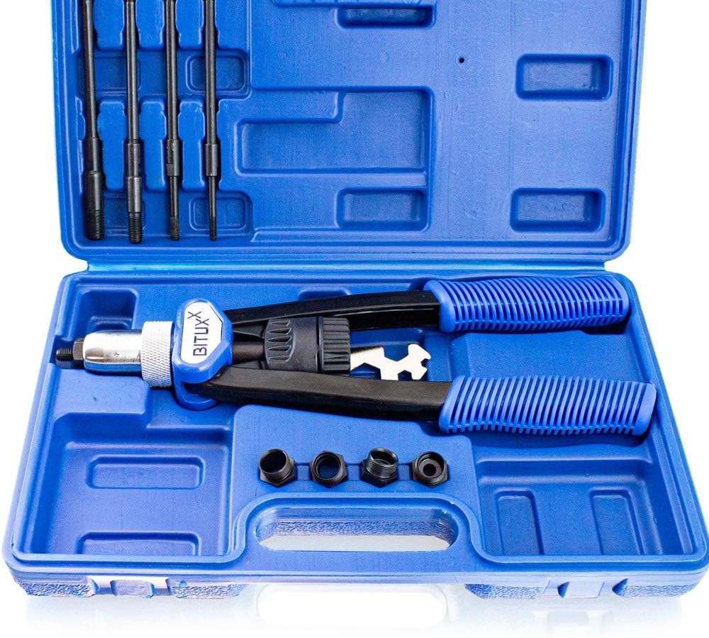 - Im Lieferumfang befinden sich Mundstücke und Zugdorne für M5, M6, M8, M10 und M12 Nieten