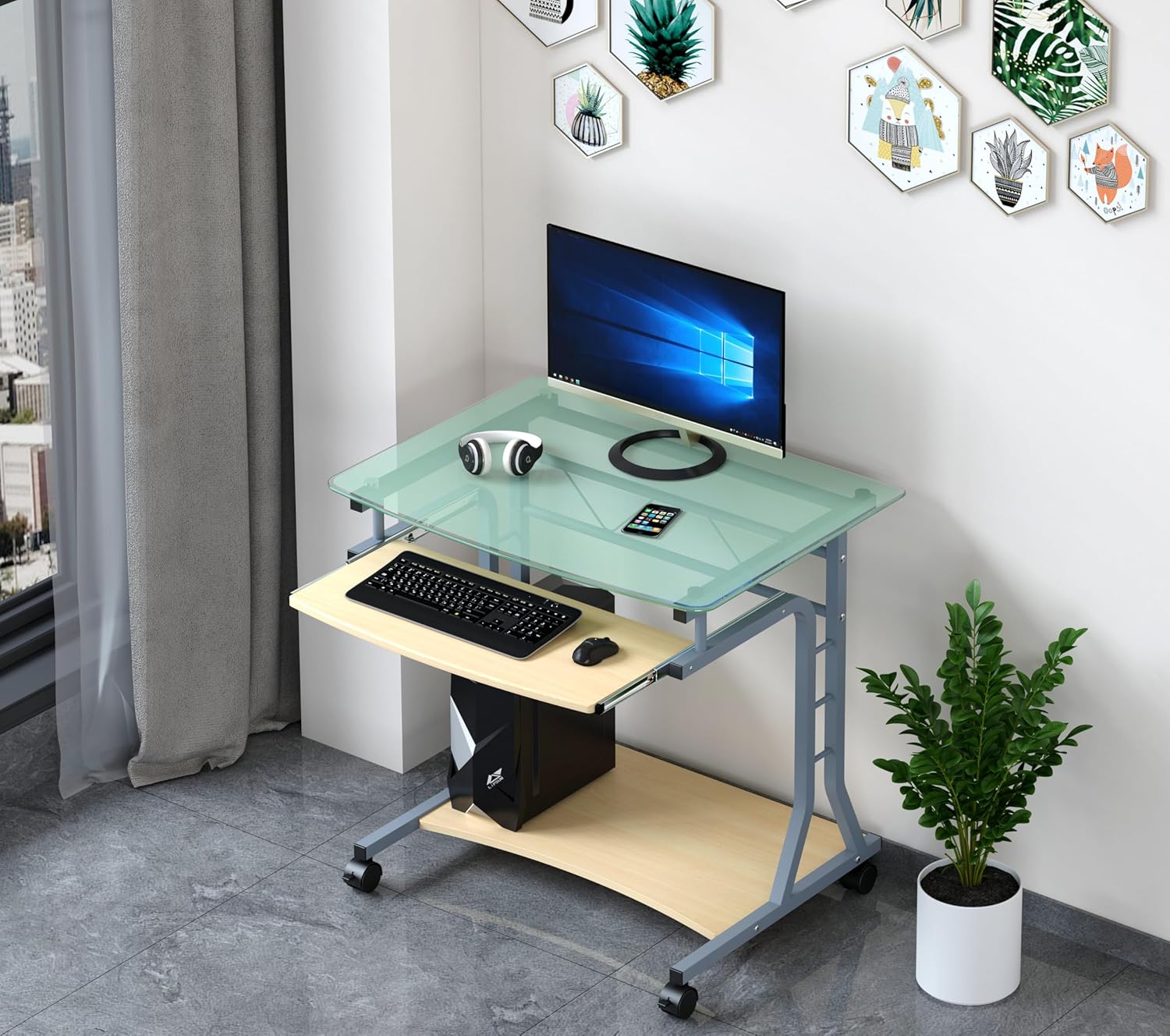 - Biurko Techly ze szklanym blatem i póÅ‚kÄ… na klawiaturÄ