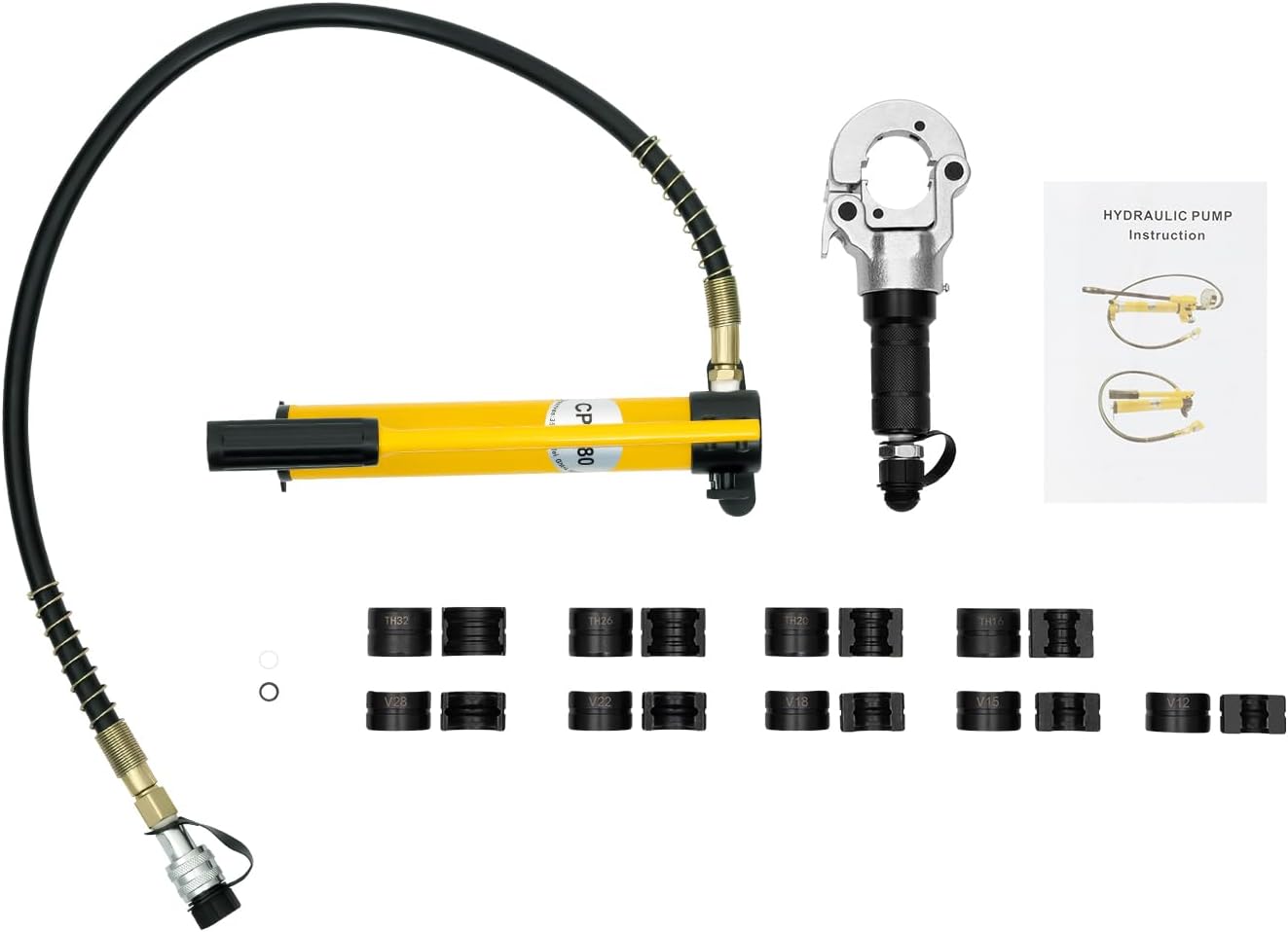 - ✔ Hydraulische Presszange inkl. V 12-28mm TH16-32mm Kupferrohr Pressbacken; Compressive force: 6T; Hose length: 40inch(1M).