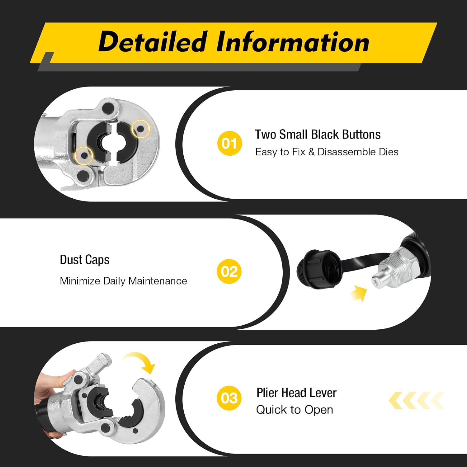 - ✔Hydraulik Crimpzange, Brandneu Hochwertige Werkzeuge, 360 ° drehbarer Kopf, Teleskophebel für optimale Kraftübertragung, Einfache Bedienung Pumpstange.