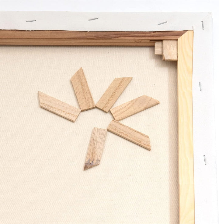 - Keilrahmenprofil mit Aussenwulst, dadurch keine Direktauflage der Leinwand auf dem Holz