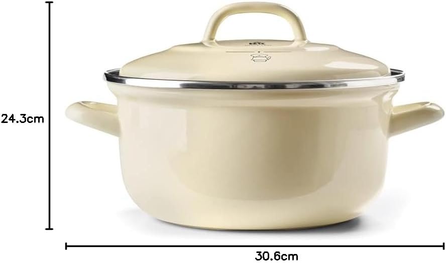 - Robuste und unglaublich widerstandsfähiger runder Schmortopf aus emailliertem Stahl (22cm/3.3l).