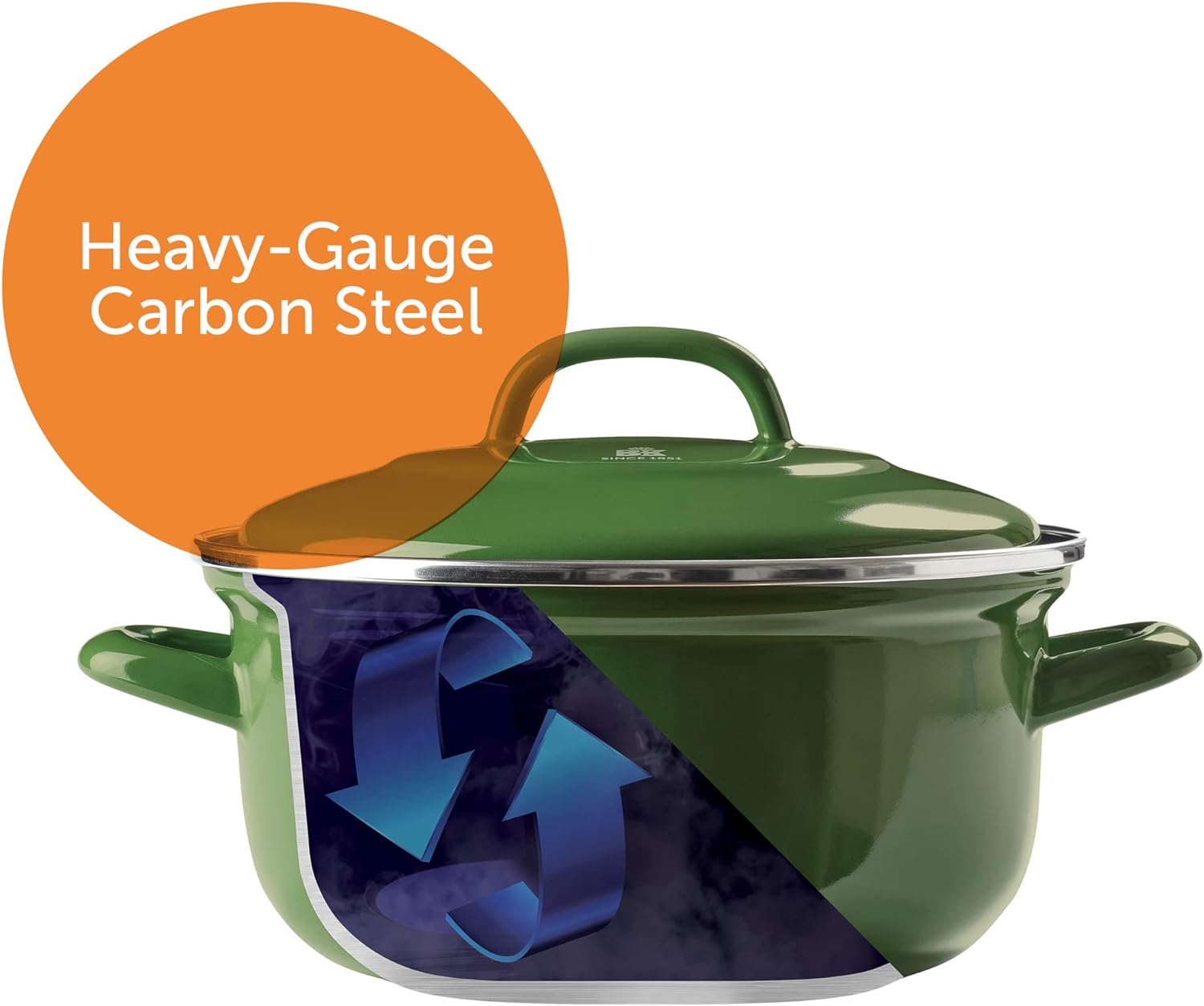 - Der Kern aus Kohlenstoffstahl ist mit der GlazeGuard-Innen- und -Aussenschicht molekular verschmolzen, um eine bessere Spänewiderstandsfähigkeit als Gusseisen zu erreichen
