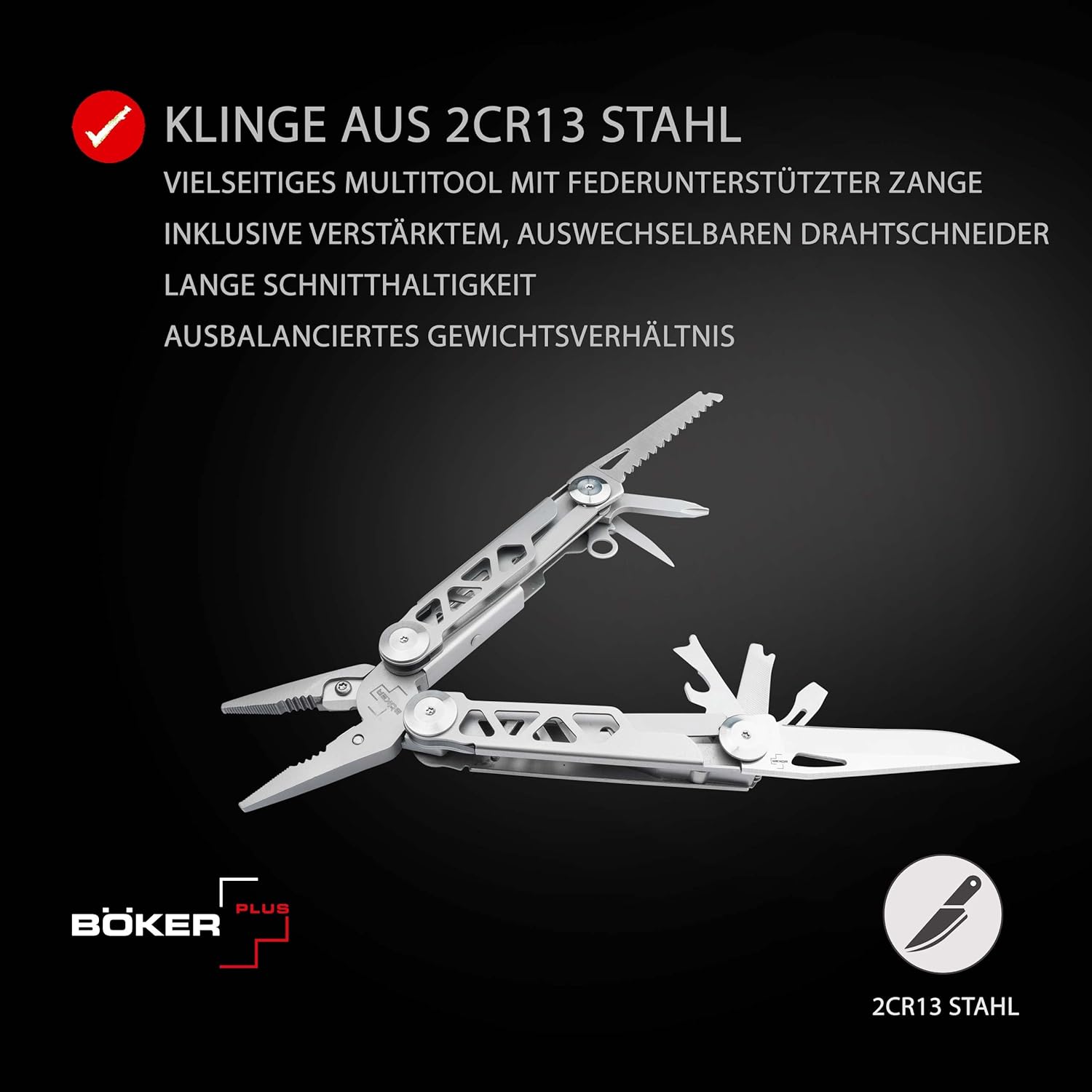 - LEBENSLANGE GARANTIE - das hochwertige BÖKER Multi-Tool wird aus hochwertigem Edelstahl & erstklassigem 2Cr13 Stahl für Klingen & Werkzeuge hergestellt. Dadurch werden Sie an ihrem langlebigen Multifunktions-Messer lange Freude haben
