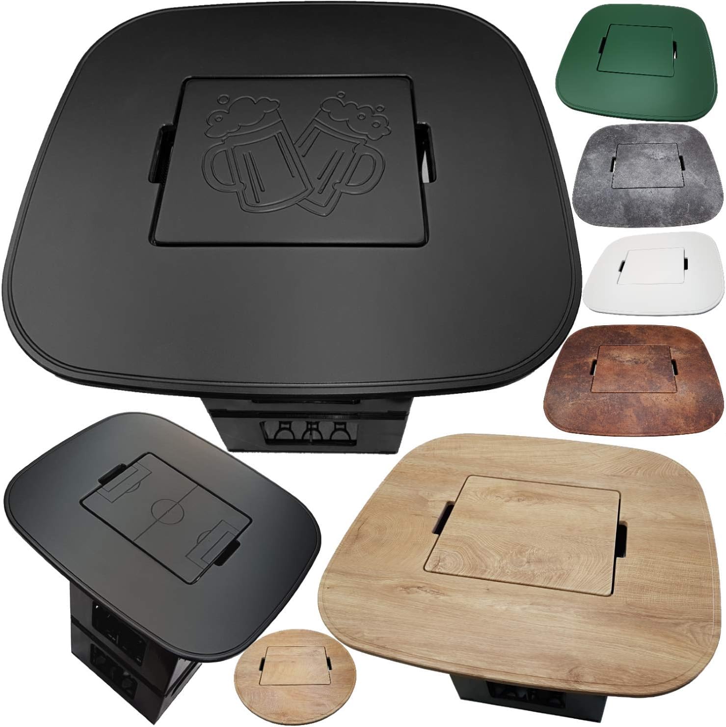 - Im Lieferumfang enthalten: Runder Tisch mit Einlegebrett, zusätzlich noch ein Befestigungsset für 3 Getränkekisten. Sie erhalten nur den Tisch - keine Dekoartikel wie Kisten, Kissen, Flaschen oder Sonstiges!