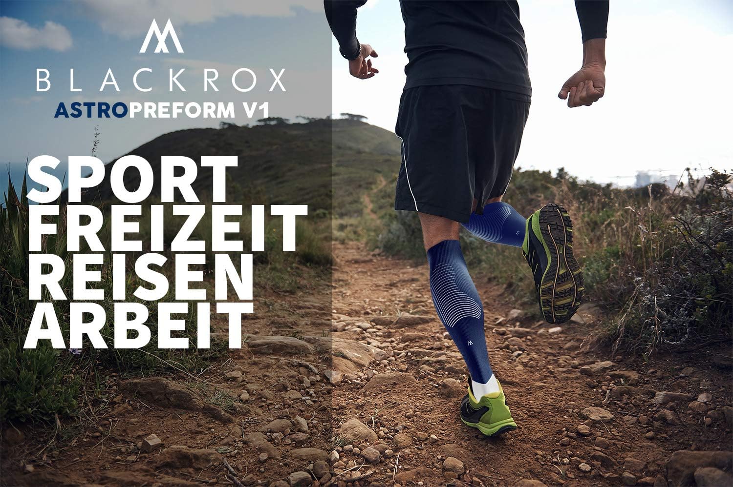• Ausstattung: Im Vergleich zu anderen Sportstrümpfen bieten die BLACKROX Kompressionsstrümpfe ASTROPREFORM V1 einen perfekten Halt ohne die Notwendigkeit eines Bündchens. Die atmungsaktive Beschaffenheit des Materials sorgt für effektive