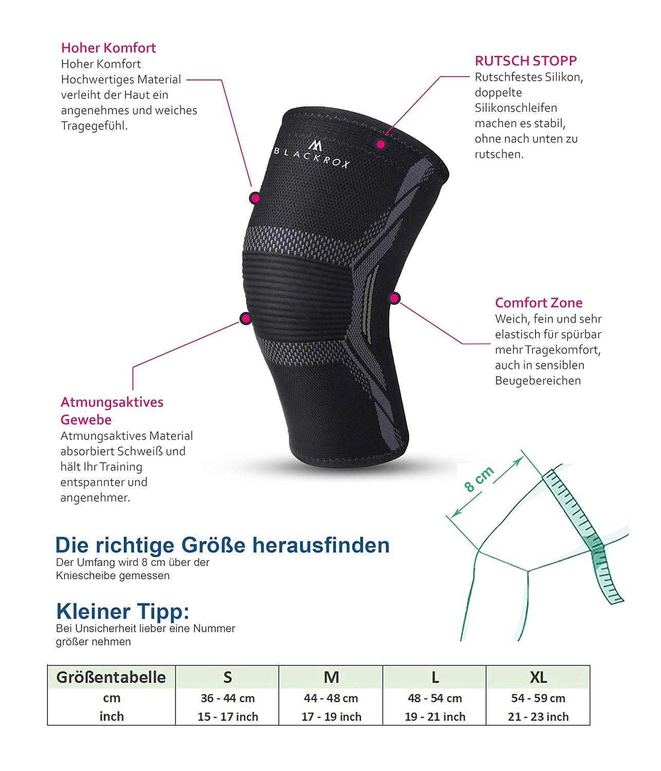 BLACKROX Kniebandage Sport Vergleichssieger Kompressions Knie Bandage, Sportkniebandage, Sport Fussb