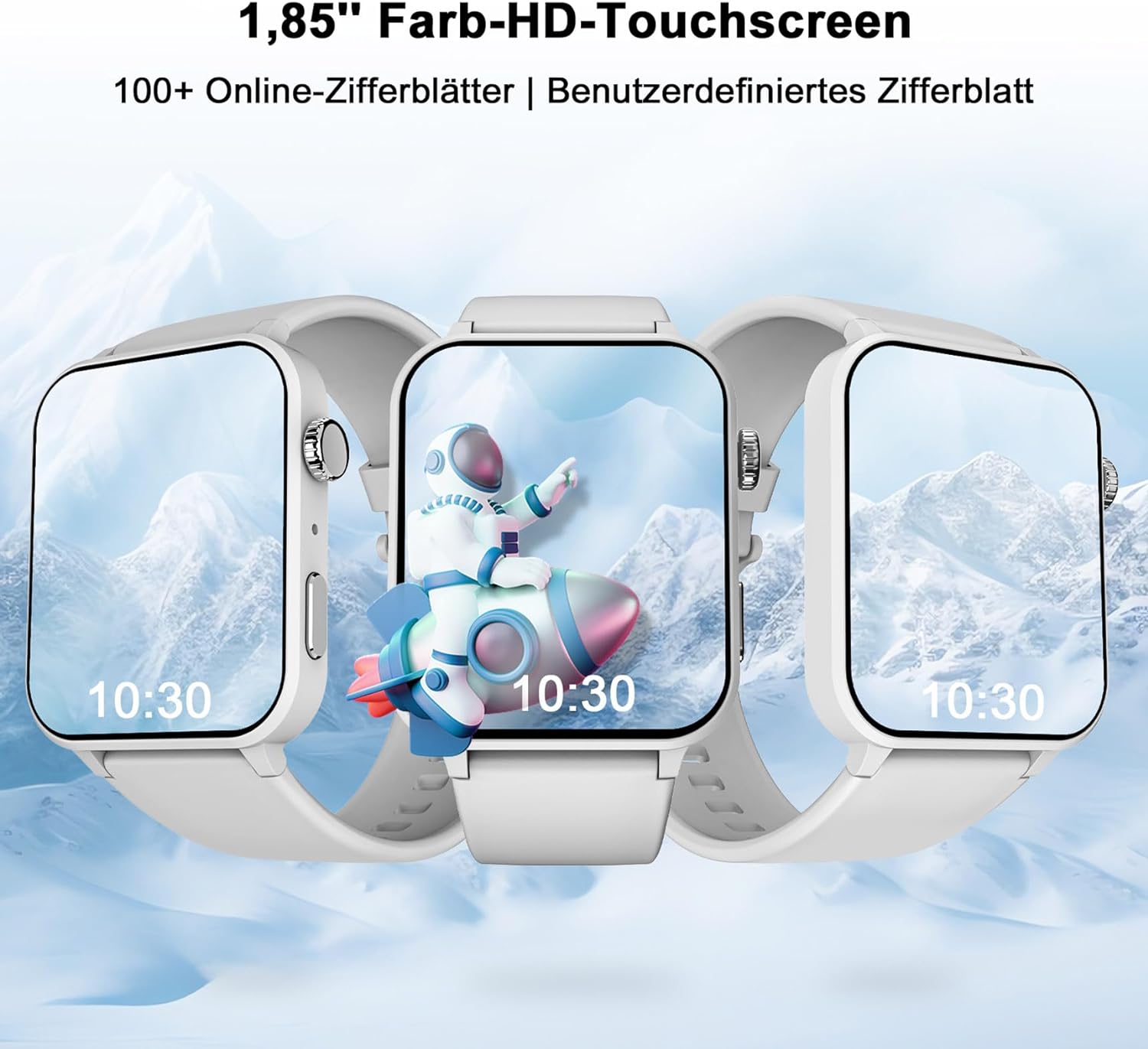 - ⌚【Smartwatch Herren & Damen】⌚ Die neue Blackview Smartwatch 2023 ist mit einem 1,85'' Farb-HD-Touchscreen ausgestattet, der Daten auch tagsüber problemlos anzeigen kann. Fitnessuhr haben mehr als 100 einzigartige Online-Zifferblätter zur