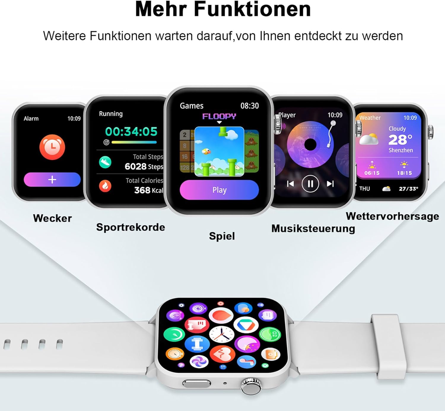 - 💕【Erleben Sie ein komfortables intelligentes Leben】💕 Laden Sie die [Da Fit APP] herunter, um weitere nützliche Funktionen für Ihre Smartwatch freizuschalten: Nachrichtenerinnerung (SMS, WhatsApp, Instagram, Facebook usw.), Anruferinnerung,