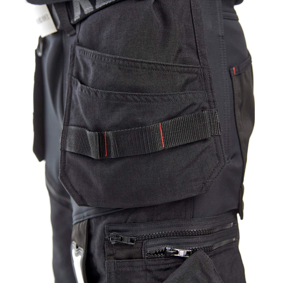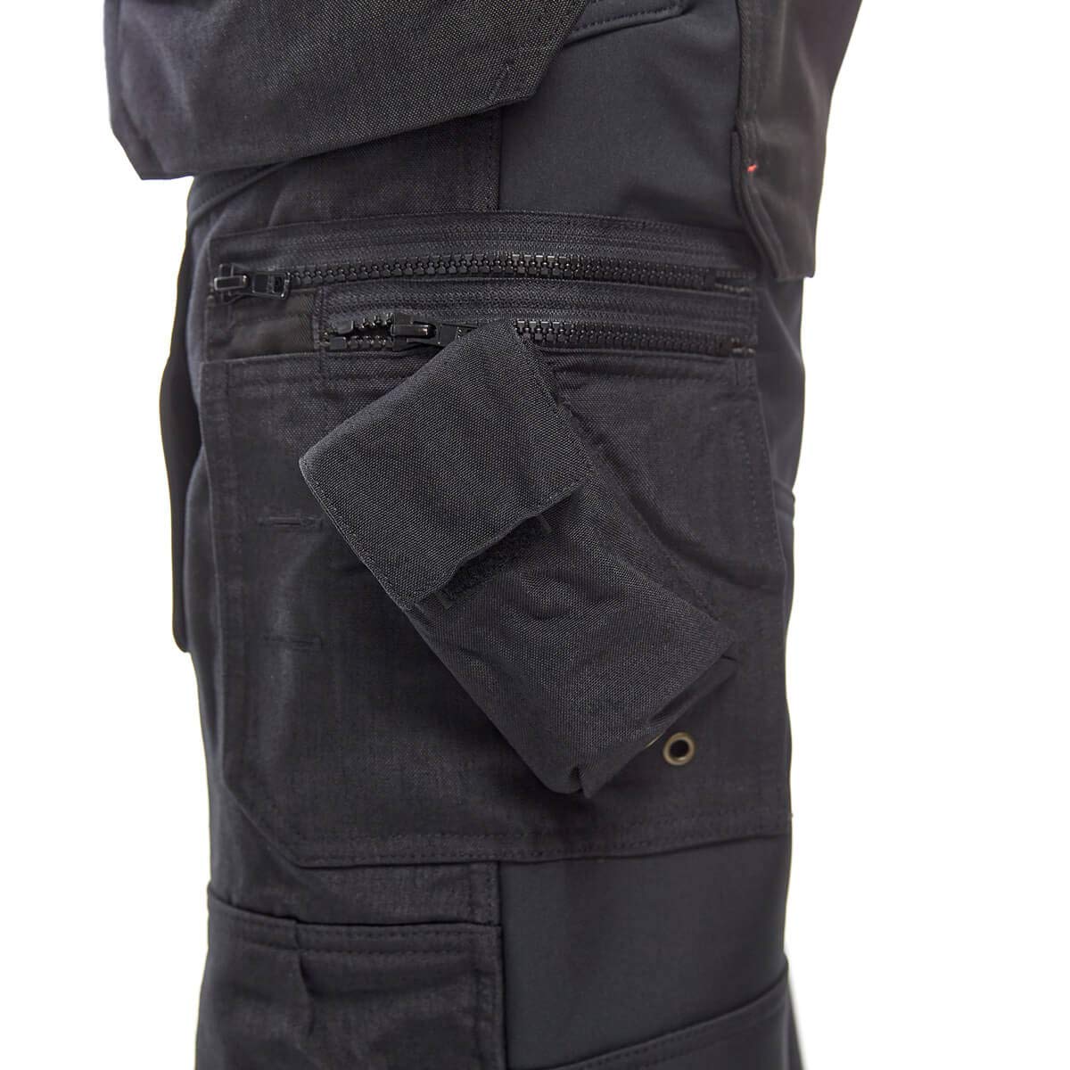 - Cordura verstärkte Nageltaschen, Gesässtaschen, Zollstocktasche, Beintaschen, Oberschenkel, Knie und Saum