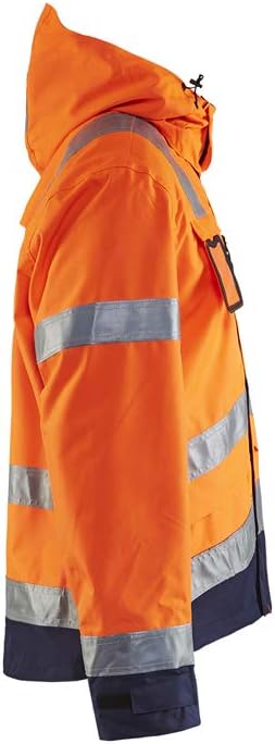 PRODUKTBESCHREIBUNGEN Winddichte Jacke aus wasserdichtem und atmungsaktivem Gewebe mit Mesh-Futter und versiegelten Nähten Wasserdichter Reissverschluss vorne. Brusttaschen mit wasserabweisendem Reissverschluss. Zwei Taschen vorne unter Patte. Schlüsselring Verstellbare Bündchen und Kordelzug an der Taille Abnehmbare Kapuze Netzfutter Innentasche und Handytasche. Ausweisfach Neonfarben Reflektorstreifen 50 mm Zertifiziert nach EN471 und EN20471 Grösse S Cl 2 Grössen M bis XXXL Cl 3 Sicherheitskleidung und EN343 Cl 3,3 Regenschutz Mehr