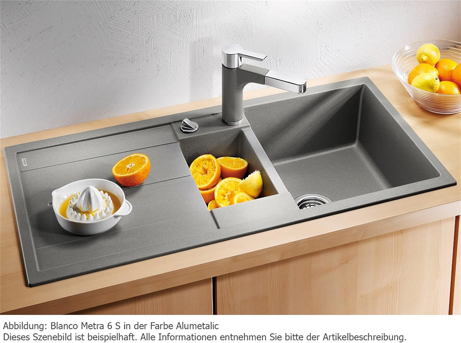 - Einbauspüle in Cafe: Mit Zusatzbecken inklusive Edelstahlschale für 60 cm breite Unterschränke – in weiteren SILGRANIT-Farben erhältlich und farblich auf die passenden BLANCO Armaturen abstimmbar