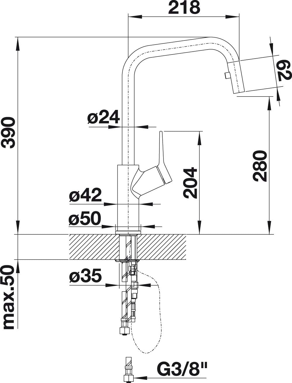 • 190° schwenkbarer hoher Auslauf – ideal zum komfortablen Befüllen von Töpfen und Vasen
