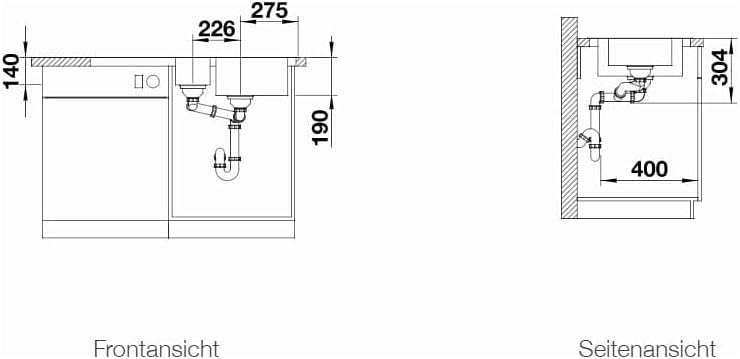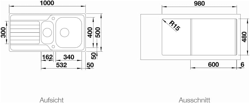 Variante: 60 cm Unterschrank mit Abtropffläche Edelstahl Bürstfinish