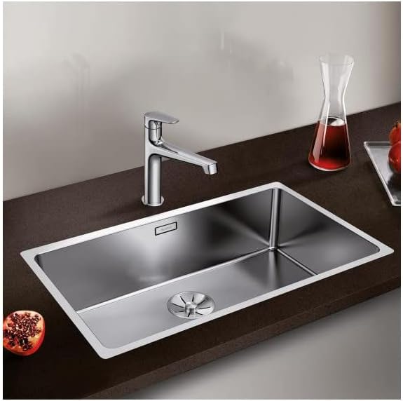 - Aussen-Abmessungen 740 x 440 mm / Beckentiefe 190 mm / Mindestbreite des Unterschranks: 80 cm - detaillierte Informationen zum Ausschnitt erhalten Sie auf der BLANCO Website