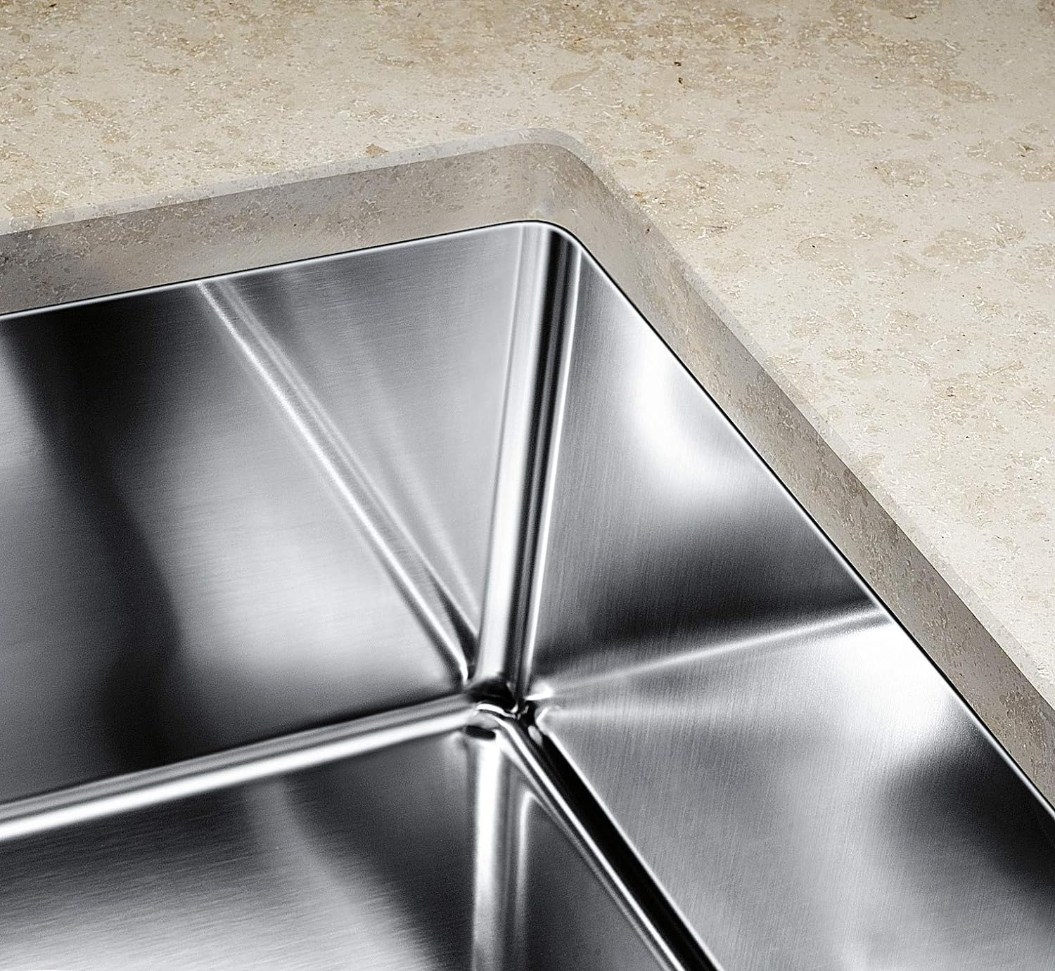 - Exklusives Doppelbecken der Produktfamilie BLANCO CLARON – aus hochwertigem Edelstahl, Seidenglanz-Finish – für den Unterbau