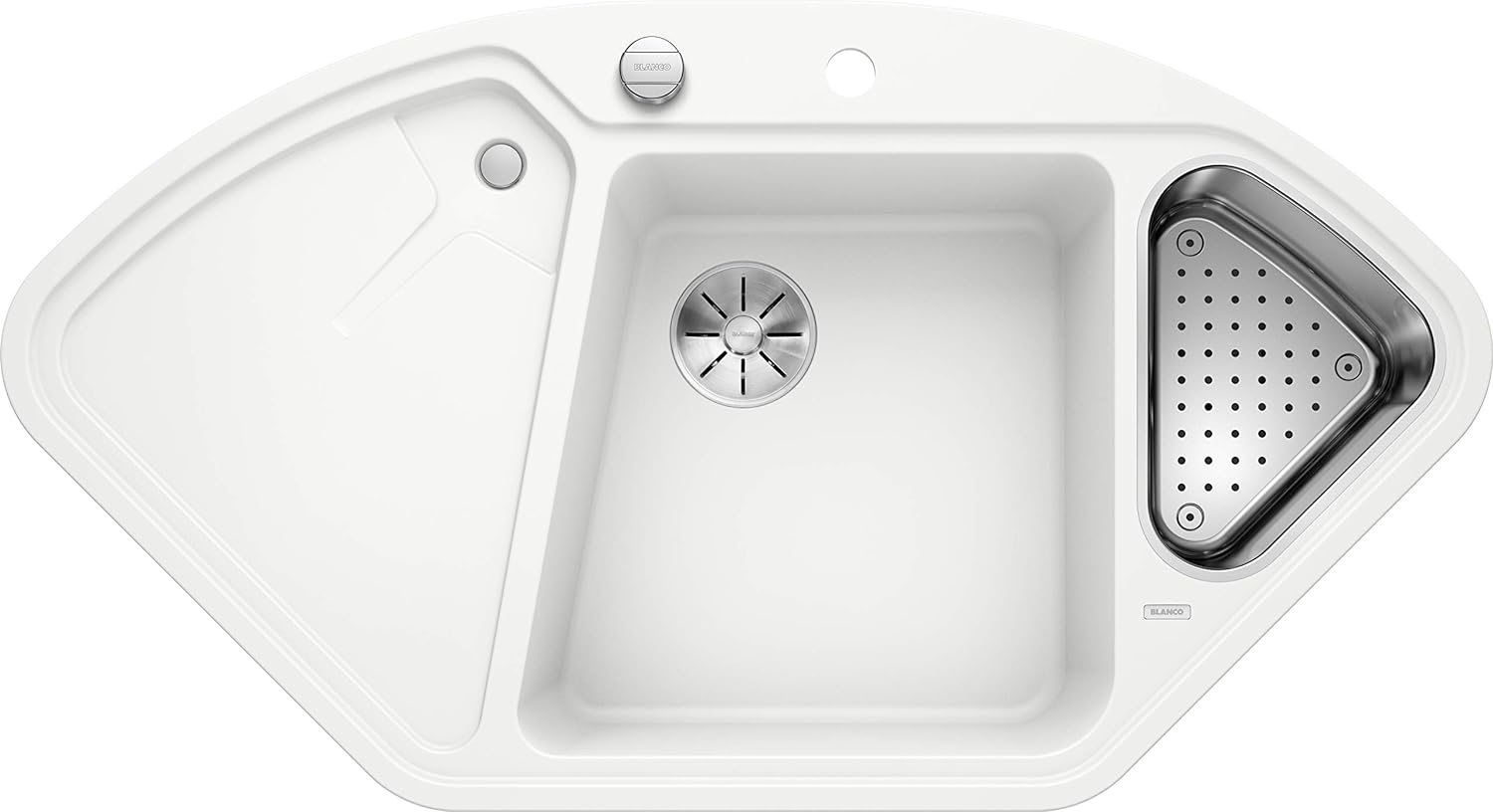 - Komfort für die Ecke: ergonomische Anordnung von Hauptbecken, Zusatzbecken und Abtropffläche / Hauptbecken mit langer Beckendiagonale zum komfortablen Reinigen sperriger Gegenstände