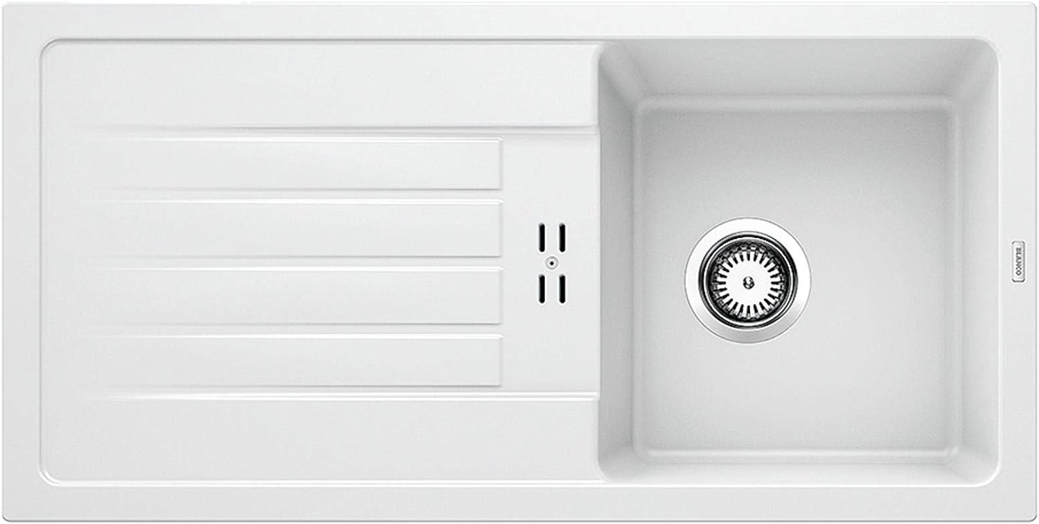 - Montagehinweise: Das Becken ist reversibel und lässt sich sowohl links als auch rechts von der Abtropffläche einbauen – mit vorgefrästen Lochbohrungen zum Durchschlagen für die Armatur