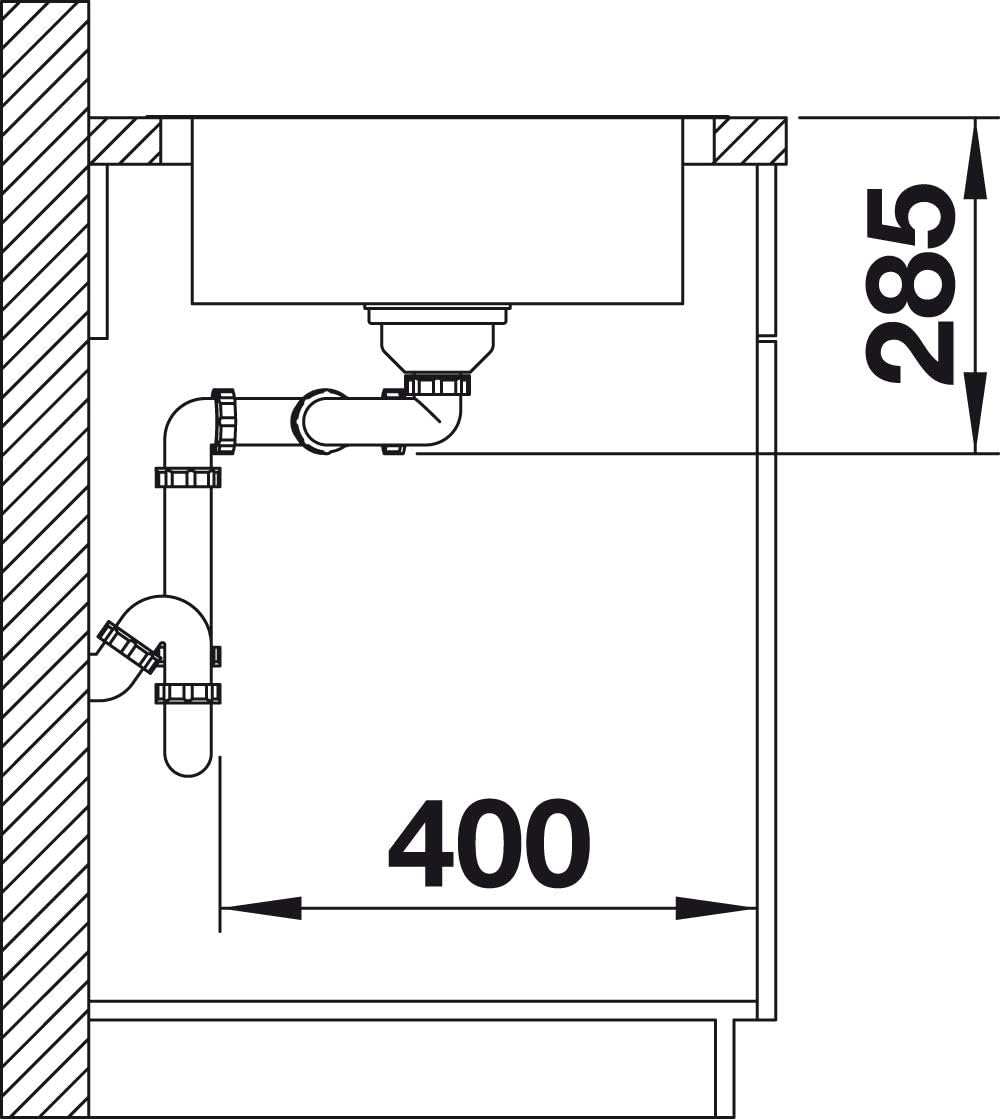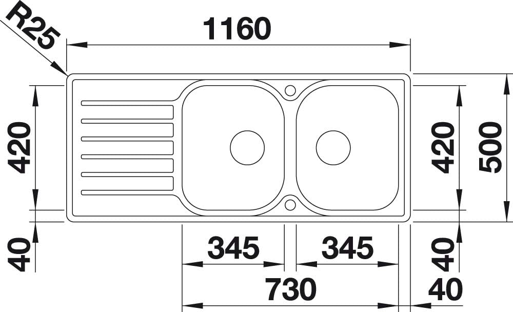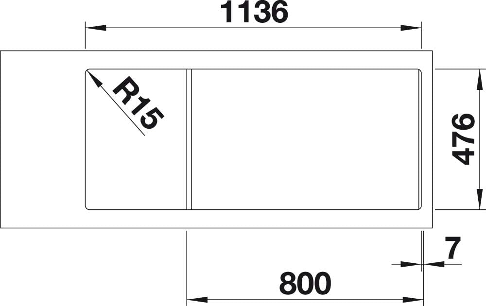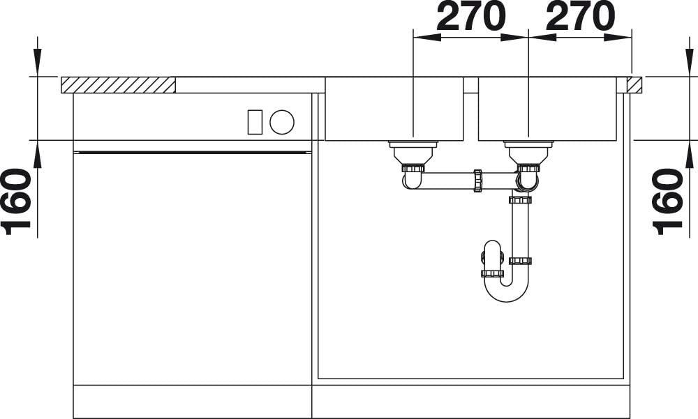 - Geradlinige Einbauspüle: Für 80 cm breite Unterschränke – Mit zwei Becken und verkürzter Abtropfzone