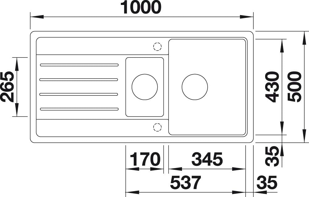 - Rechteckige Einbauspüle in klassischer Linienführung: Spülbecken in Anthrazit für 60 cm breite Unterschränke – in weiteren SILGRANIT-Farben erhältlich und farblich auf die passenden BLANCO Armaturen abstimmbar