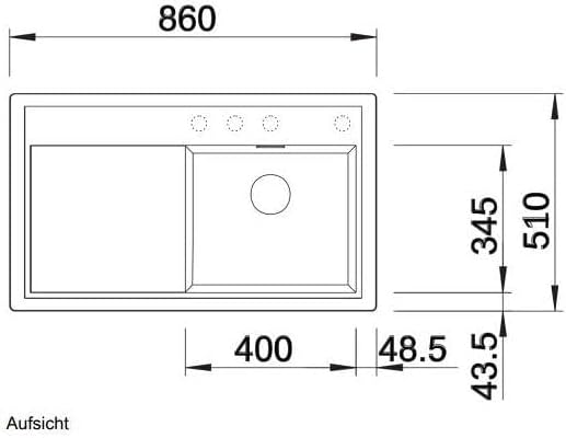 • Aussenmasse: 860 x 510 mm; Beckengrösse: 400 x 345 x 190 mm