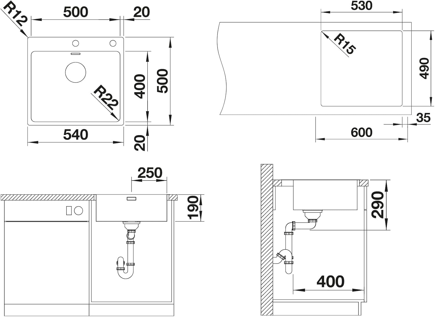 Variante: Einbau von oben 500mm Mit Armaturenbank