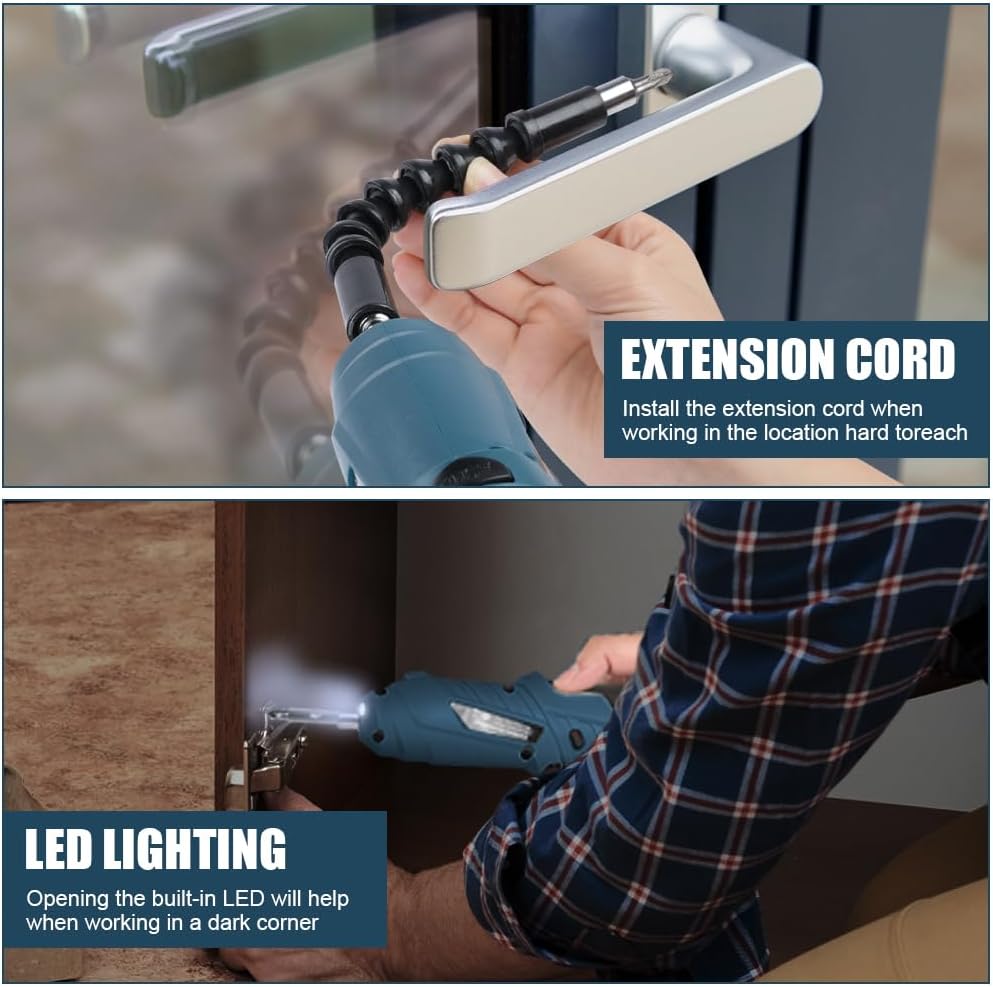 - 【BREITE ANWENDUNG】 Dieser Schraubendreher ist eine ideale Wahl für kleine tägliche Arbeiten. Er eignet sich perfekt für die schnelle und einfache Montage von Möbeln, die Installation von Schränken, Heimwerkerarbeiten oder anderen